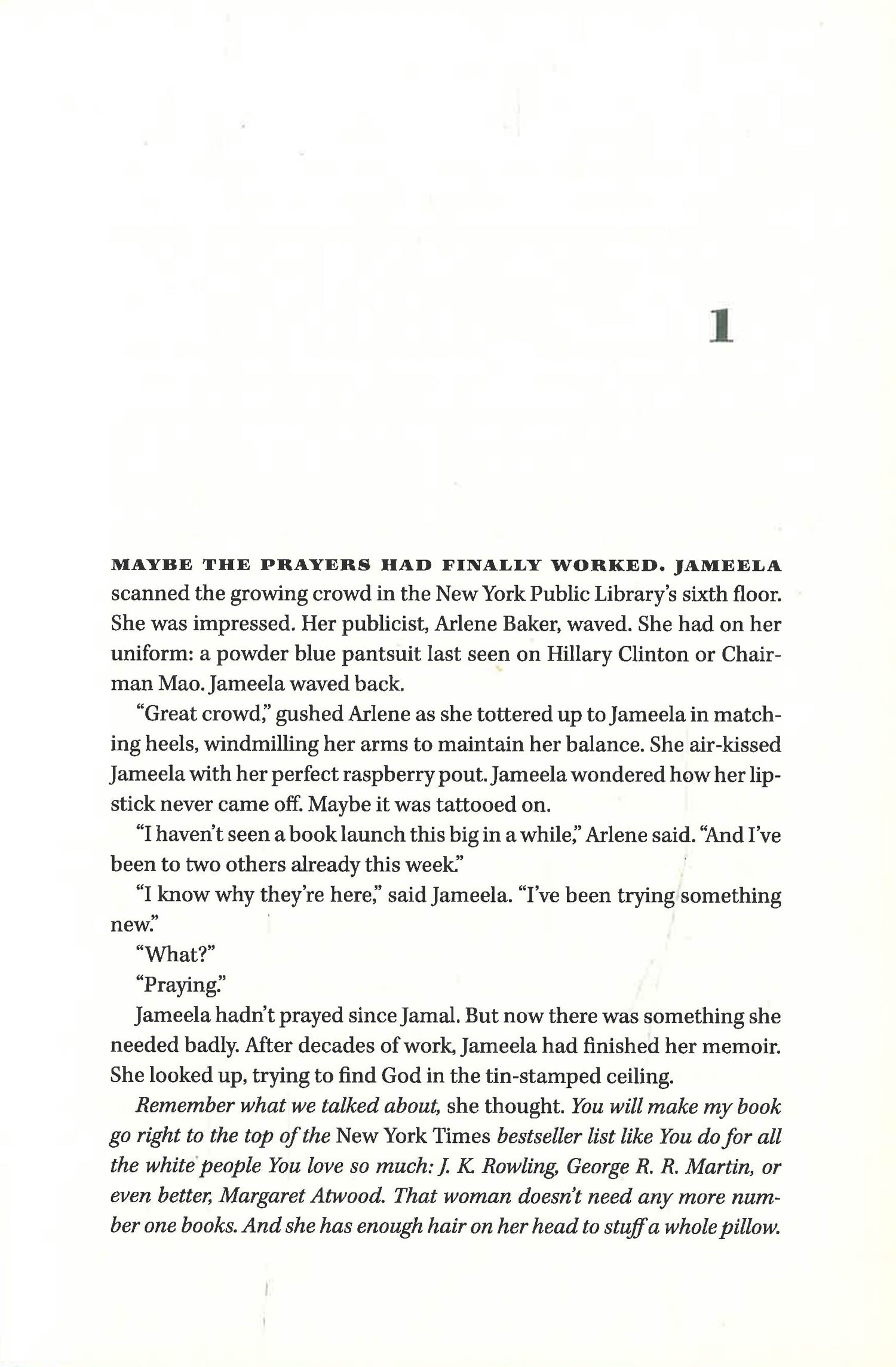 To see her memoir on the New York Times bestseller list. When her dream doesn’t come true, she seeks spiritual guidance at her local mosque. New imam and recent immigrant Ibrahim Sultan is appalled by Jameela’s shallowness, but agrees to assist her on one condition: that she perform a good deed.