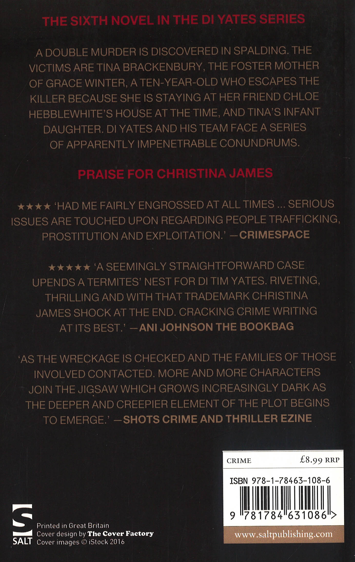 The victims are Tina Brackenbury, the foster mother of Grace Winter, a ten-year-old who escapes the killer because she is staying her friend Chloe Hebblewhite's house at the time, and Tina's infant daughter. Enquiries by the police and social services reveal that some four years previously Grace was the sole survivor of the horrific massacre of her mother, grandparents and sister at Brocklesby Farm in North Lincolnshire, a crime for which her uncle Tristram Arkwright is currently serving a whole-life tariff.