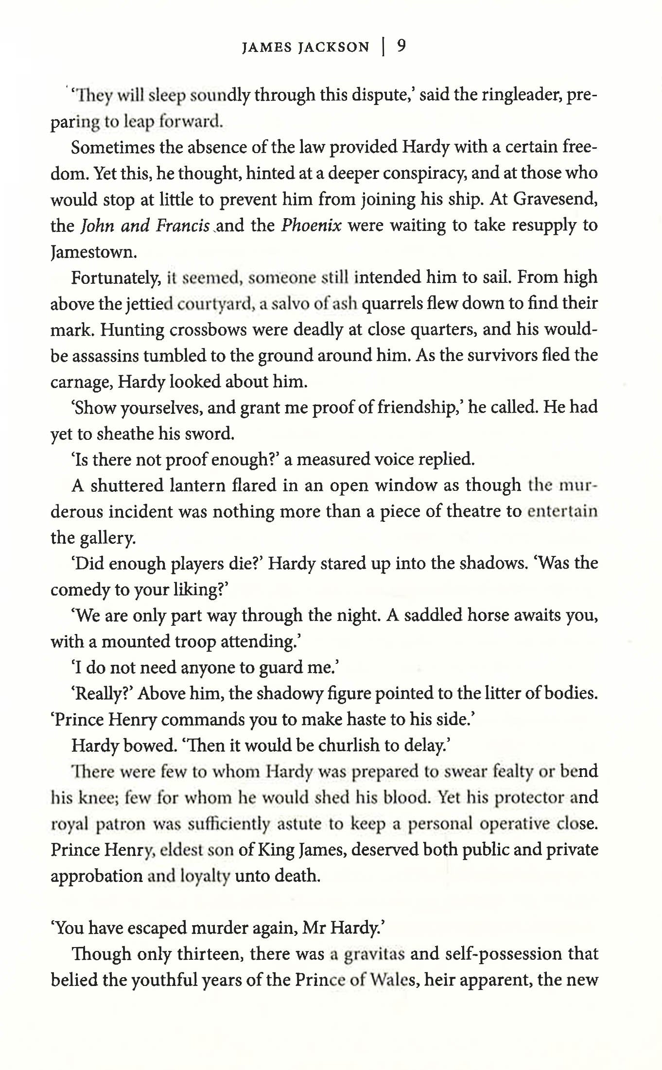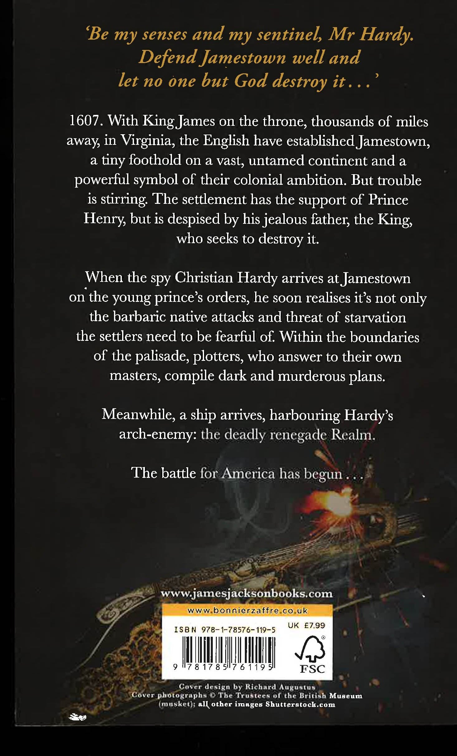 For fans of Conn Iggulden and Bernard Cornwell, a pulse-racing and dramatic new thriller from Sunday Times bestselling author James Jackson about the founding of America's first colony. American was born in blood. 1607. With King James on the throne, thousands of miles away, in Virginia, the English have established Jamestown, a tiny foothold on a vast, untamed continent and a powerful symbol of their colonial ambition. But trouble is stirring. The settlement has the support of Prince Henry, but is despised by his jealous father, the King, who seeks to destroy it. Meanwhile, a ship arrives, harbouring Hardy's arch-enemy: the deadly renegade Realm. The battle for America has begun . . .