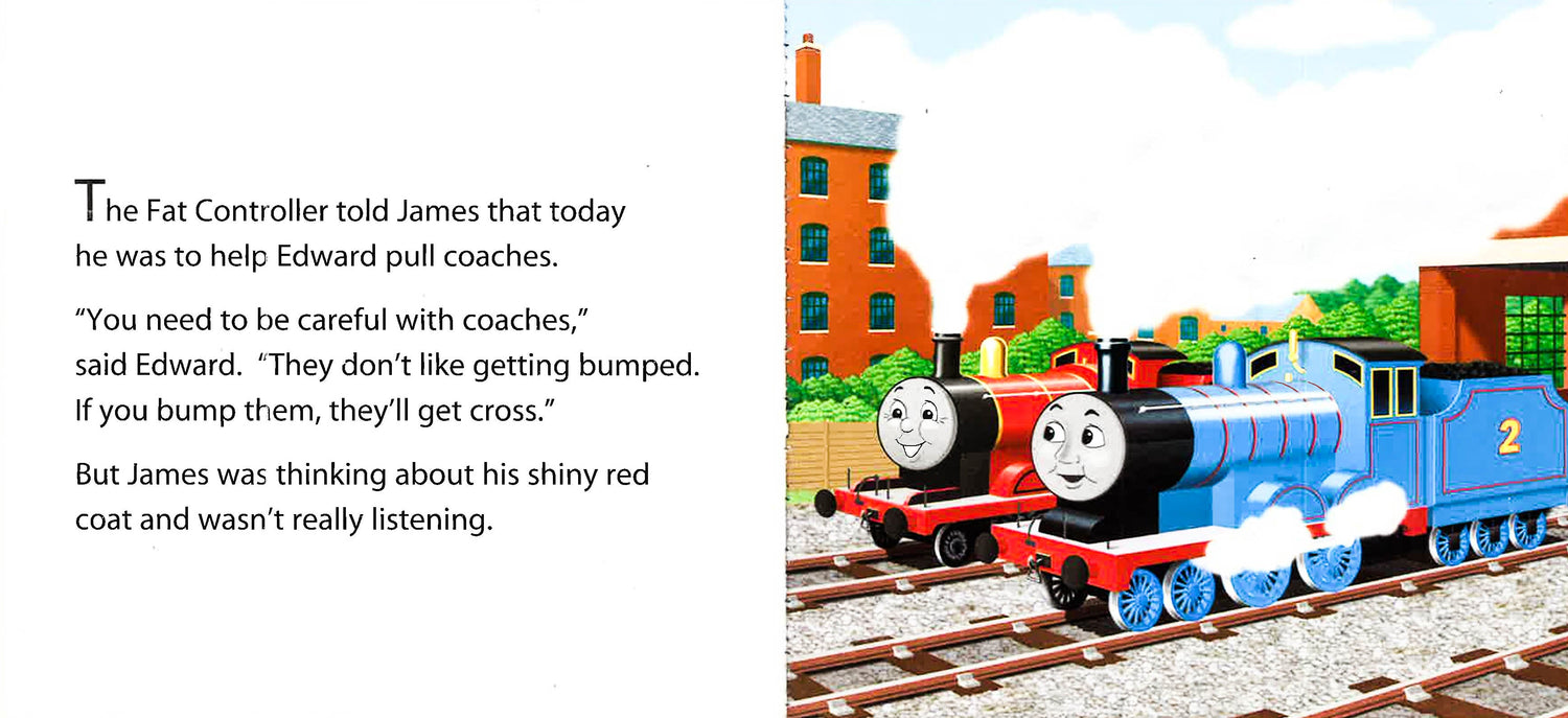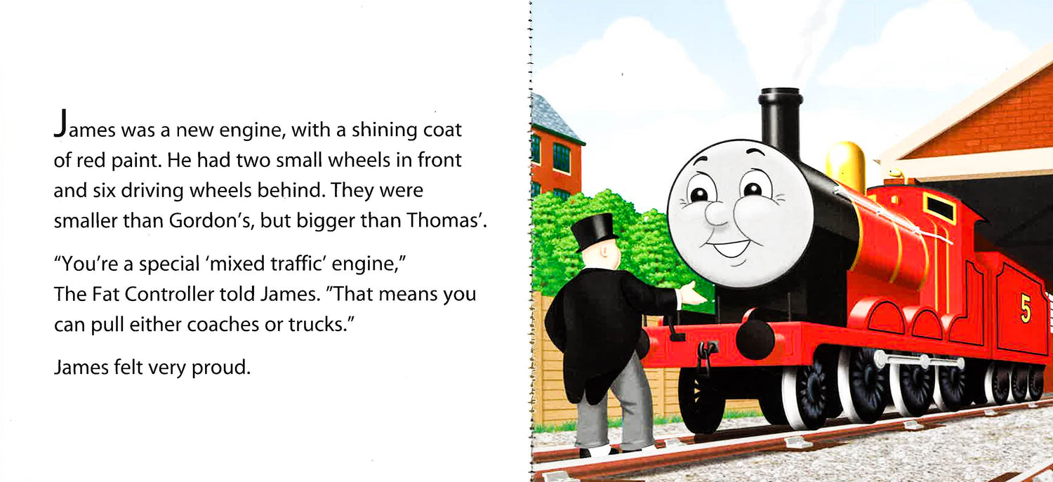 James is a bright red engine, and he's very proud of his bright red paint. So proud, in fact, that it distracts him from all his other jobs!