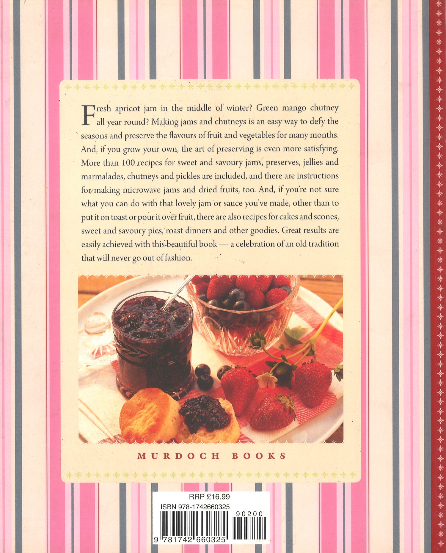 More than 100 recipes for sweet and savoury jams, preserves, jellies, marmalades, chutneys and pickles are included, and there are instructions for making microwave jams and dried fruits, too. And, if you're not sure what you can do with that lovely jam or sauce you've made, other than to put it on toast or pour it over fruit, there are also recipes for pies, tarts and other meals and snacks. Great results are quickly achieved using this beautiful book - a celebration of an old tradition that will never go out of fashion.