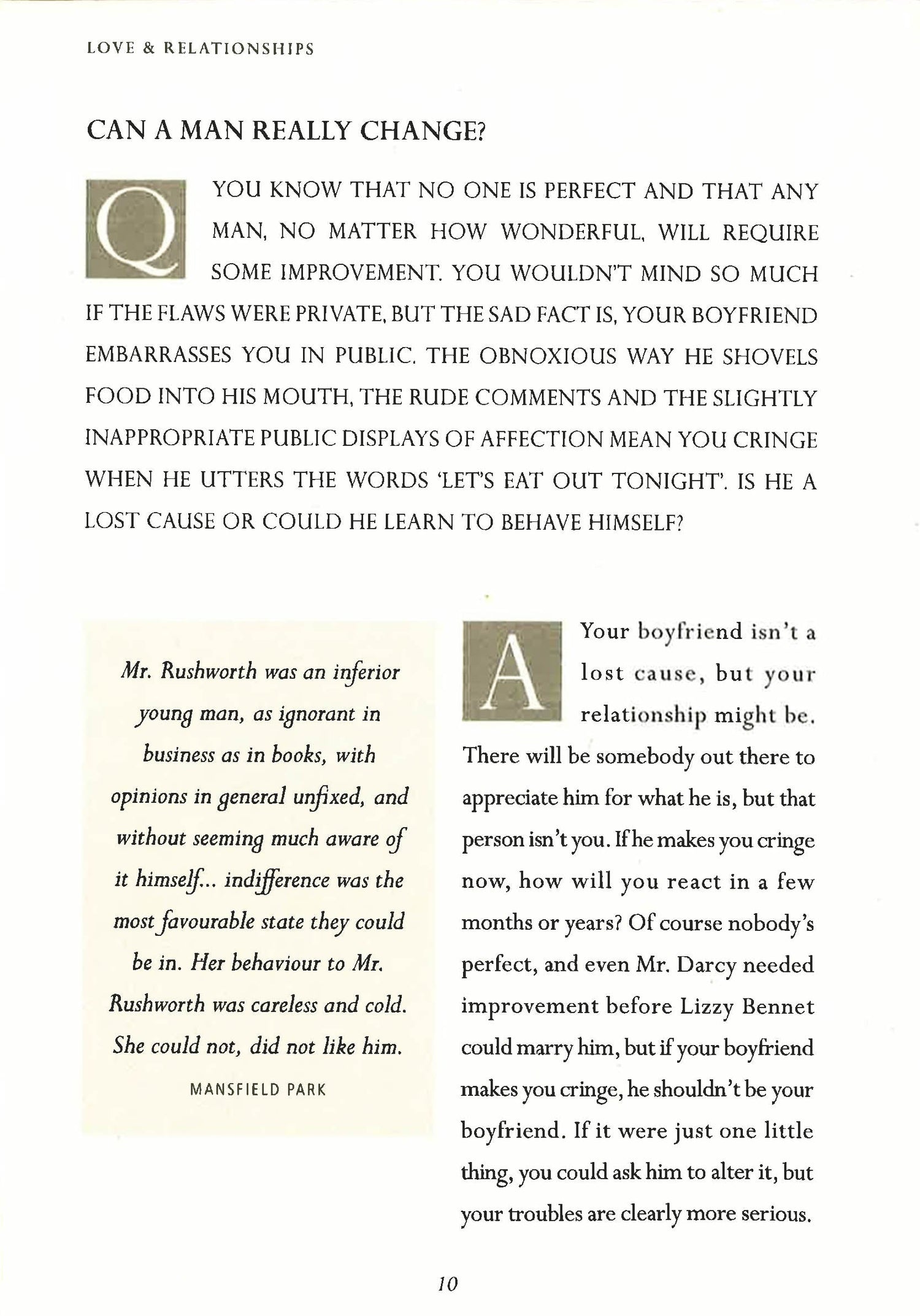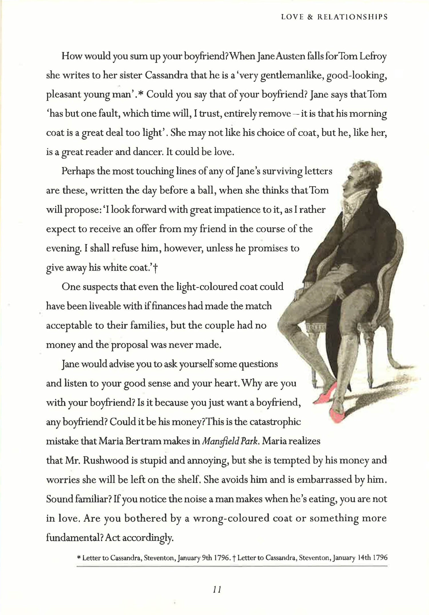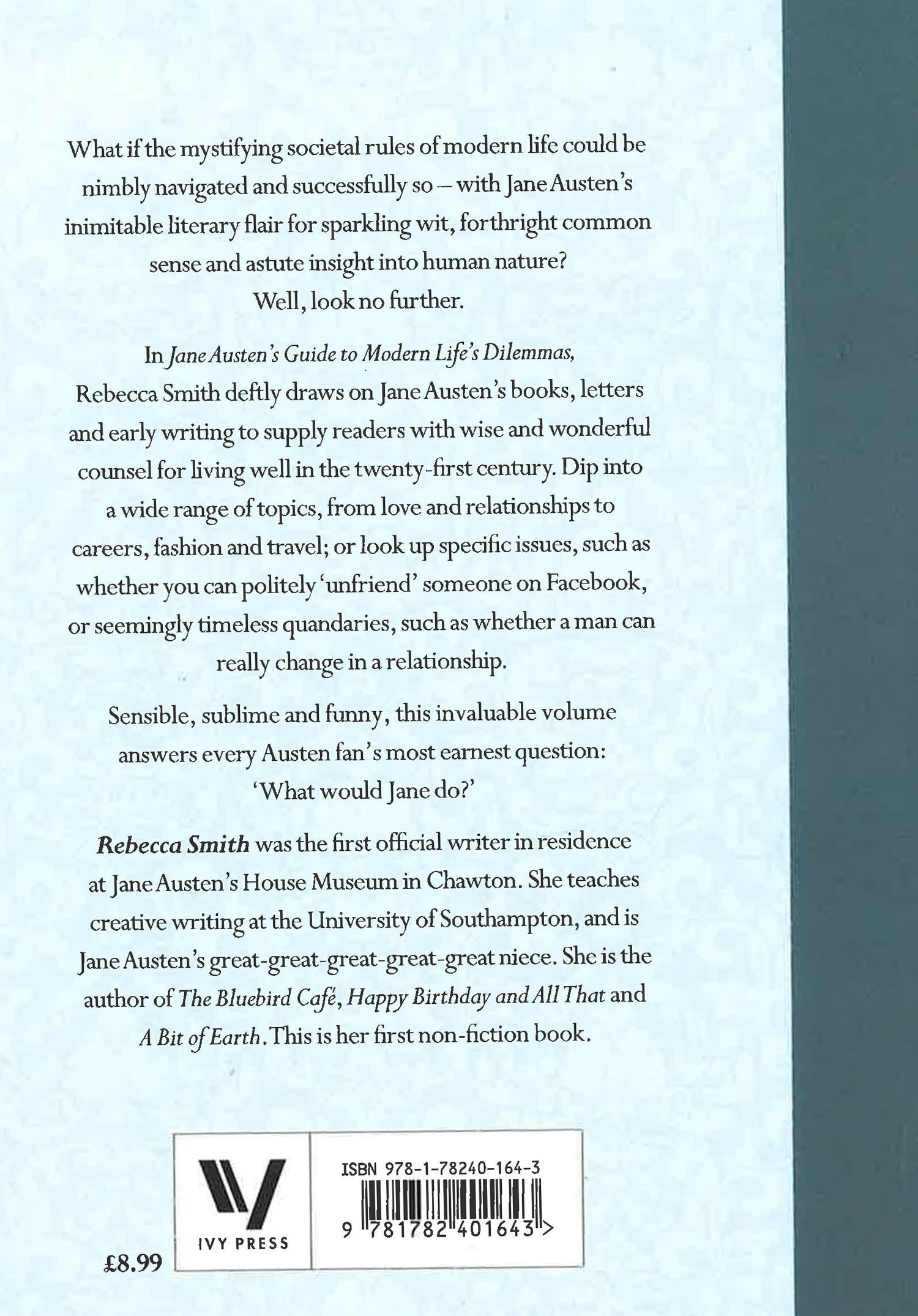 Jane Austen is more of a celebrity and media queen now than she was in her lifetime. As a forensic observer of the social scene, with a mordant wit, ironic eye, and a sly way of puncturing pretension and seeing past the social fac ade, there is no doubt that if she had been with us today, she would have had her own column in an upmarket glossy a stylish, smartcookie agony aunt. Unfortunately, she did not get the opportunity, and so Jane Austens Guide to Modern Lifes Dilemmas is a crack at showing what it might have been like. This is a smart, sassy look at modern work, domestic, and romantic dilemmas, answered not by Jane Austen herself, but using her clear-eyed, witty, unsentimental view of life, love, and money with quotations from her books, letters, and unpublished writing as back-up. Treat it like a new and sensible best friend, to turn to whenever you are confronting lifes dilemmas (how can I stop saying yes to everything, what do I wear to a society wedding, is internet dating just for the desperate, etc).