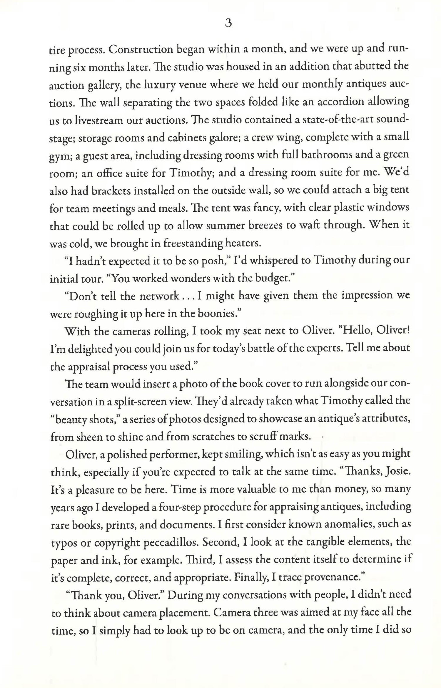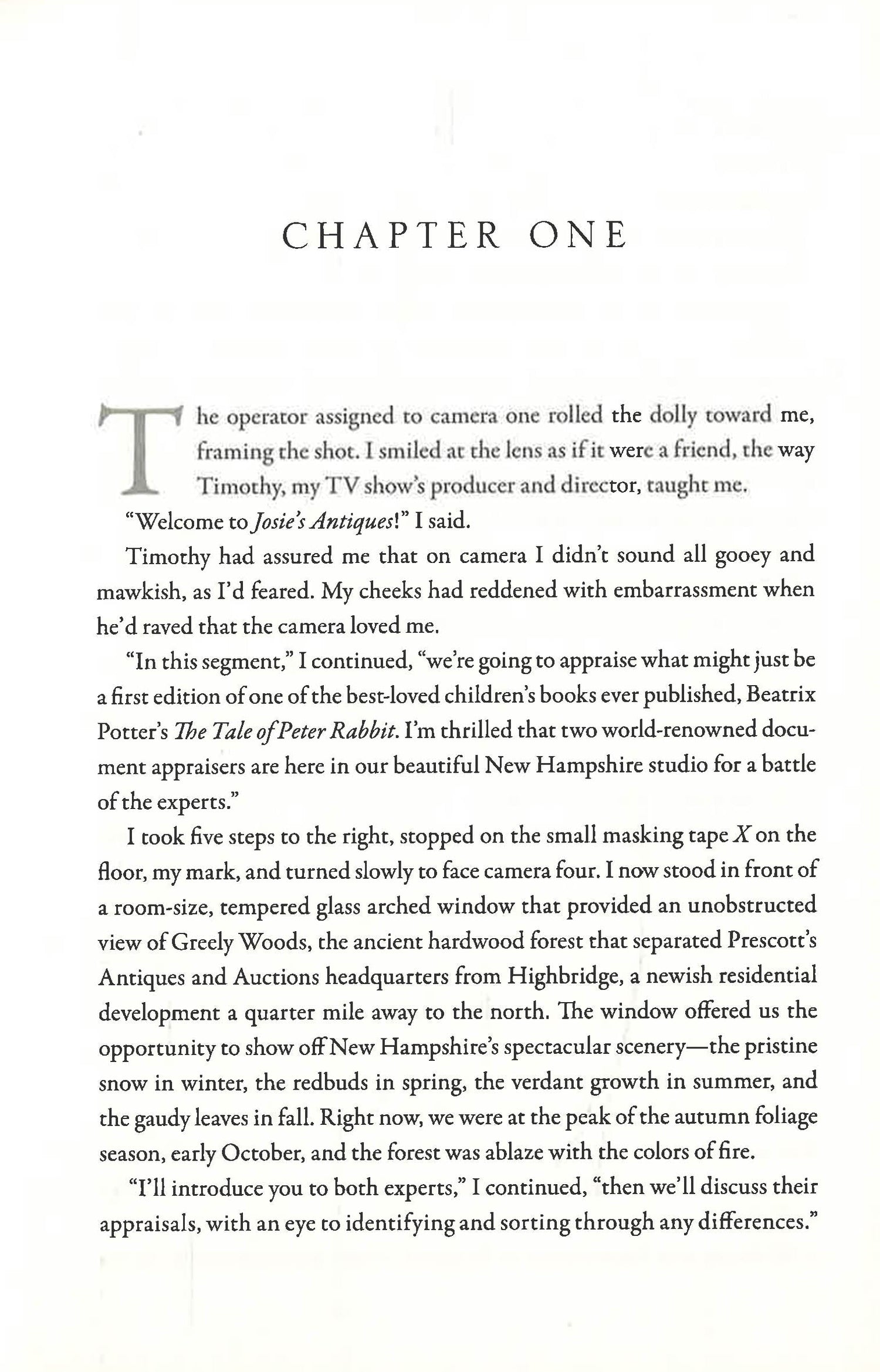 Antiques appraiser Josie Prescott is in the midst of filming a segment for her new television show, Josie's Antiques, when the assistant director interrupts to let her know she has a visitor. Josie reluctantly pauses production and goes outside, where she finds an elegant older woman waiting to see her.