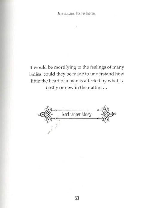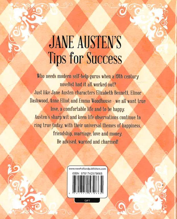 Jane Austen's Tips for Success is a gift book sure to delight Austen fans. Most of us are like Elizabeth Bennett, Elinor Dashwood, Anne Elliot and Emma. We want true love, a comfortable life and to be happy. Although Jane Austen's novels are set in the drawing rooms of Regency England, their universal themes of happiness, friendship, marriage, love and money are timeless. It's no wonder Jane Austen's keen observations about people and human nature continue to enthral us. With her concise language and reassuring voice, she has something to offer everyone who wants to live a successful and fulfilled life. The book contains wonderful quotes about life taken straight from Austen's novels. Enjoy the wit and wisdom of Jane Austen - be advised, warned & charmed.