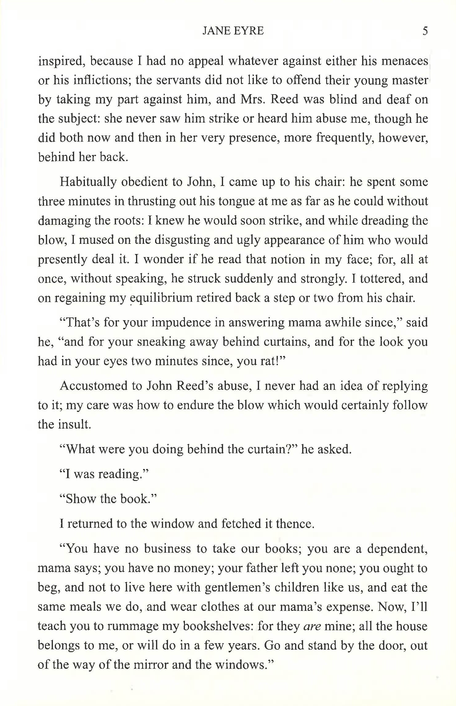 Introduction and Notes by Dr Sally Minogue, Canterbury Christ Church University College. 'Jane Eyre' ranks as one of the greatest and most perennially popular works of English fiction. Although the poor but plucky heroine is outwardly of plain appearance, she possesses an indomitable spirit, a sharp wit and great courage. She is forced to battle against the exigencies of a cruel guardian, a harsh employer and a rigid social order. All of which circumscribe her life and position when she becomes governess to the daughter of the mysterious, sardonic and attractive Mr Rochester. However, there is great kindness and warmth in this epic love story, which is set against the magnificent backdrop of the Yorkshire moors. Ultimately the grand passion of Jane and Rochester is called upon to survive cruel revelation, loss and reunion, only to be confronted with tragedy. AUTHOR: Charlotte Bronte (1816-1855) was oldest of the three Bronte sisters to achieve fame. Her first published novel 'Jane Eyre' remains her most popular work, but her subsequent books, 'Shirley', 'Villette' and the posthumously-published 'The Professor' are all highly rated.