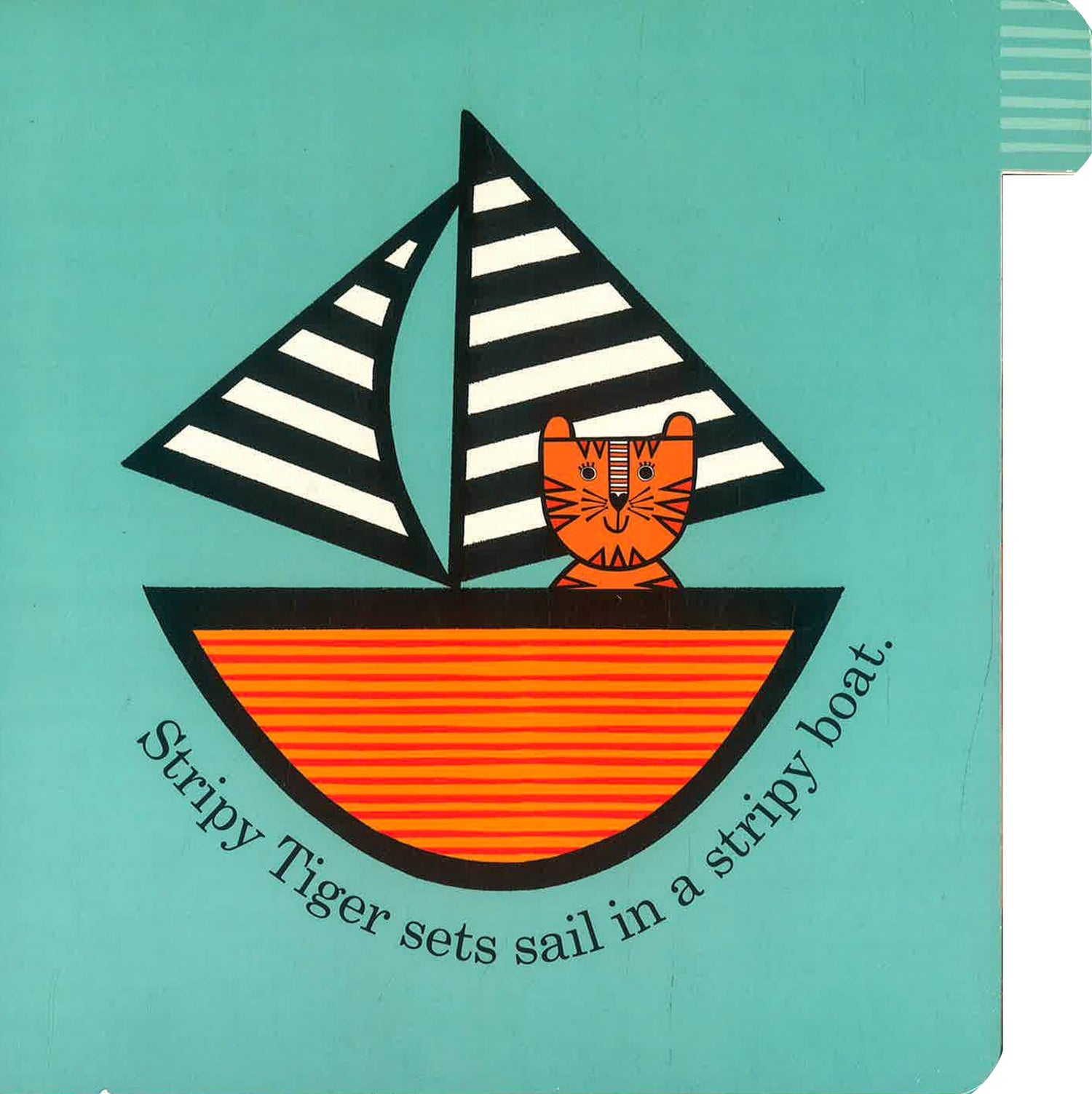 In this colorful and sophisticated board book with patterened tabs on the side, children will be introduced to bold, vibrant patterns that Tiger finds, such as striped fish, spotted submarines, triangular tents, square suitcases, swirly balloons, starry skies, and more!