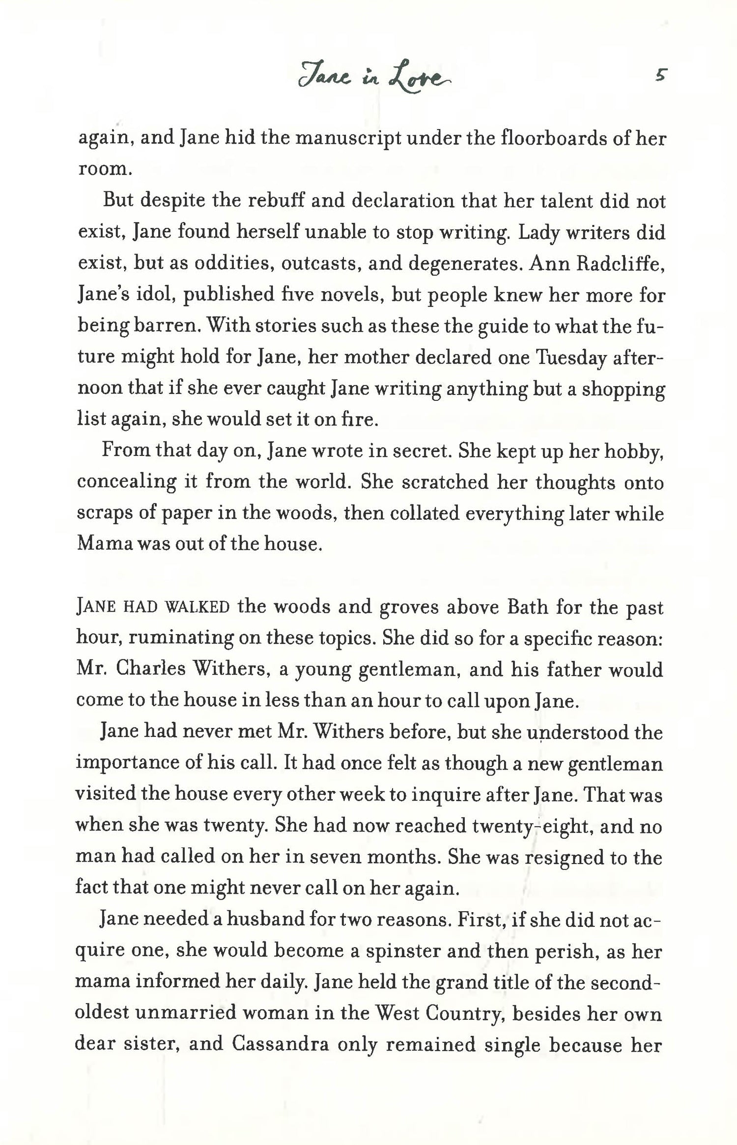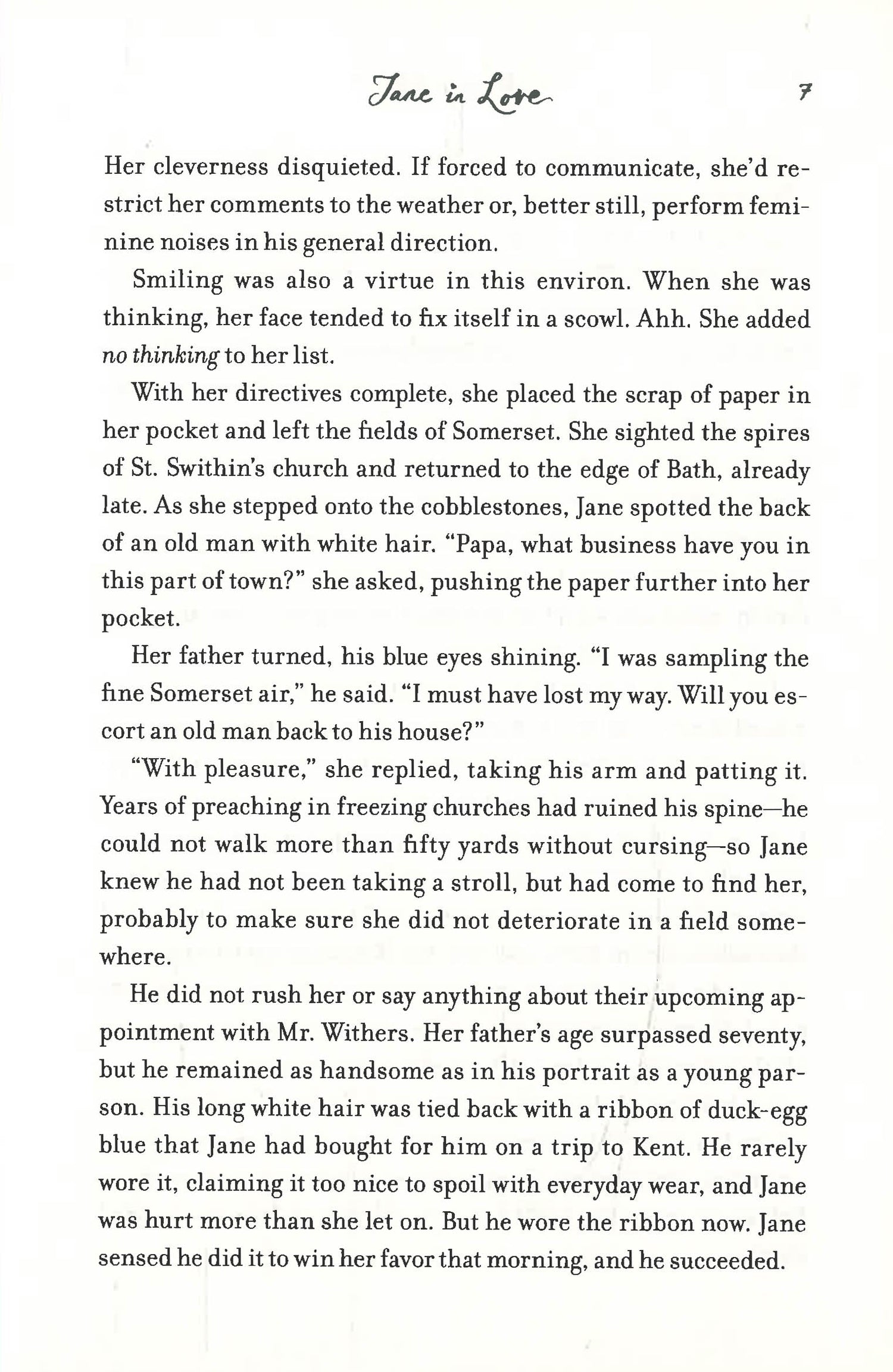 Bath, England, present day. The film set of Northanger Abbey. Sofia Wentworth is a Hollywood actress starring in a new period film, an attempt to reinvent her flagging career and, secretly, an attempt to reinvent her failing marriage. When Sofia meets Jane, she marvels at the young actress who can’t seem to "break character," even off set. And Jane—acquainting herself with the horseless steel carriages and seriously shocking fashion of the twenty-first century— meets Sofia, a woman unlike anyone she’s ever met before. Then she meets Fred, Sofia’s brother, who has the audacity to be handsome, clever, and kind-hearted.