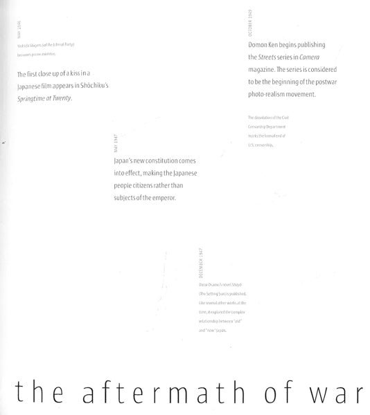 Photographers: Ken Domon, Hiroshi Hamaya, Tadahiko Hayashi, Eikoh Hosoe, Yasuhiro Ishimoto, Kikuji Kawada, Ihee Kimura, Shigeichi Nagano, Ikko Narahara, Takeyoshi Tanuma, Shomei Tomatsu