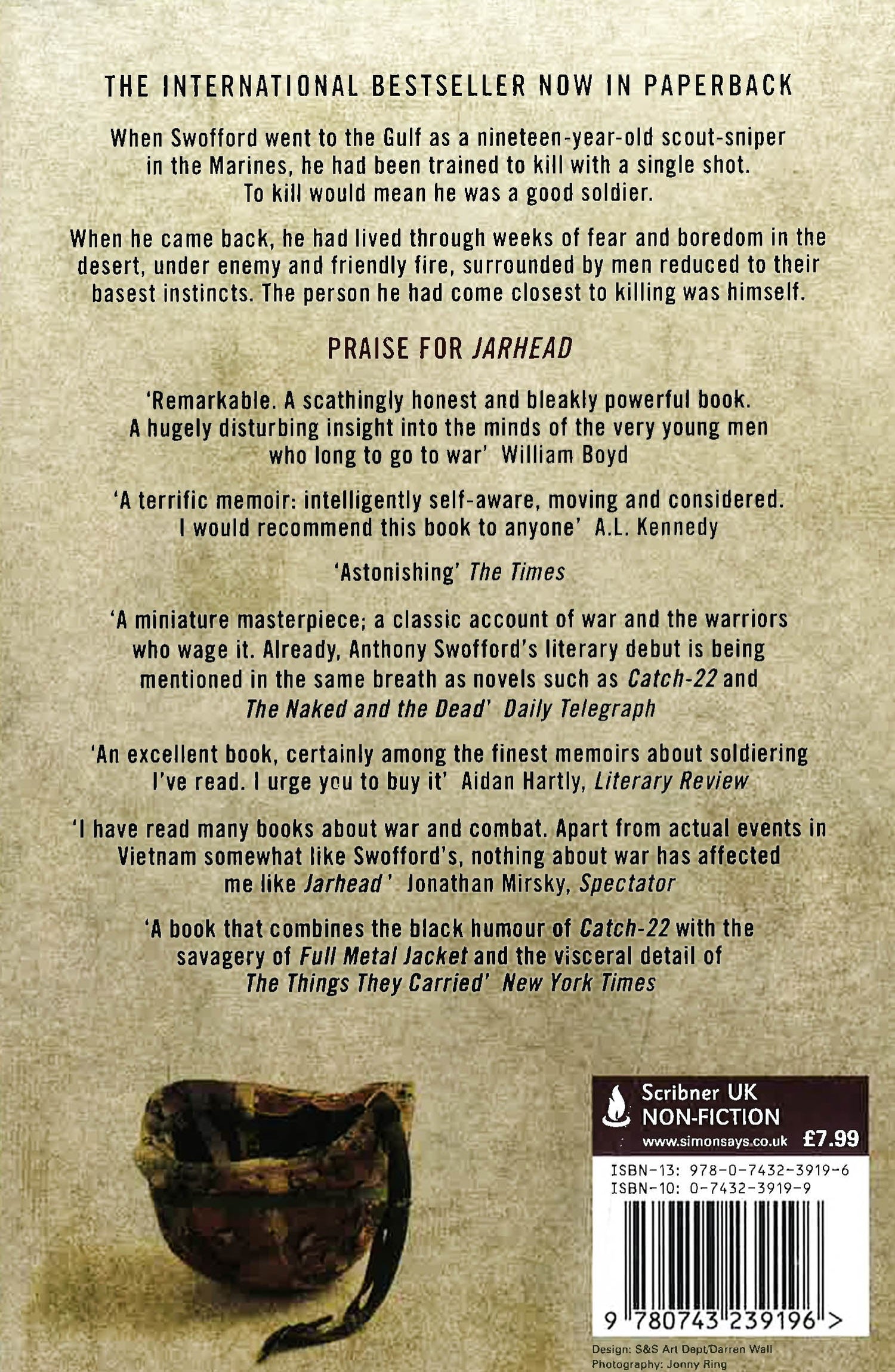 Anthony Swofford's grandfather fought in WWII; his father fought in Vietnam; and he - a directionless, testosterone-battered teenager - became a scout/sniper in the marines and fought in the Gulf War. His account of that time is also part of a lineage - after Wilfred Owen, Norman Mailer, Michael Herr and Tim O'Brien, it brings the raw and searing tradition of soldiers' stories up to date. A harrowing yet inspiring portrait of a tormented consciousness struggling for reconciliation and peace, JARHEAD is authentic, revelatory and brilliantly crafted.