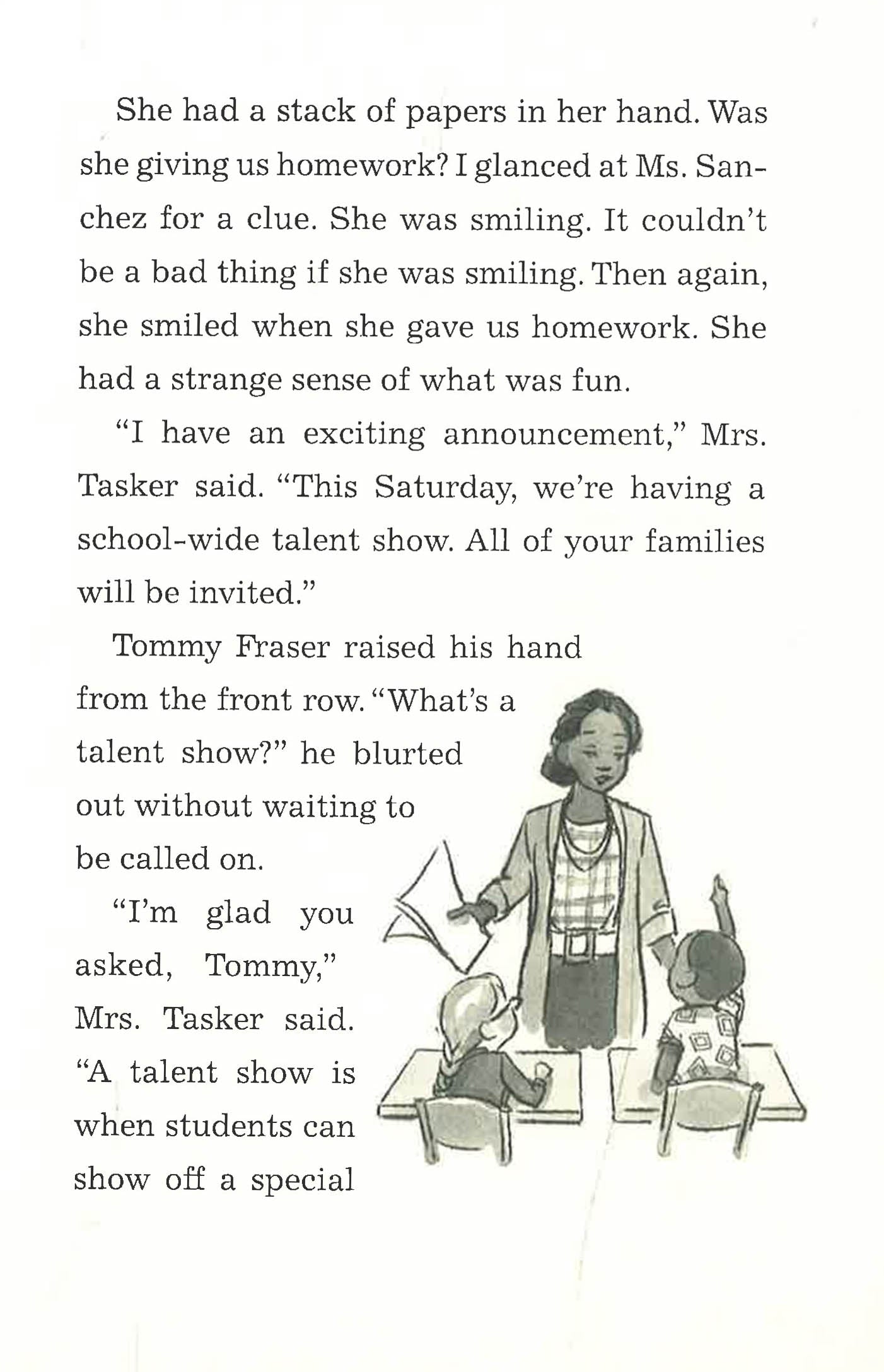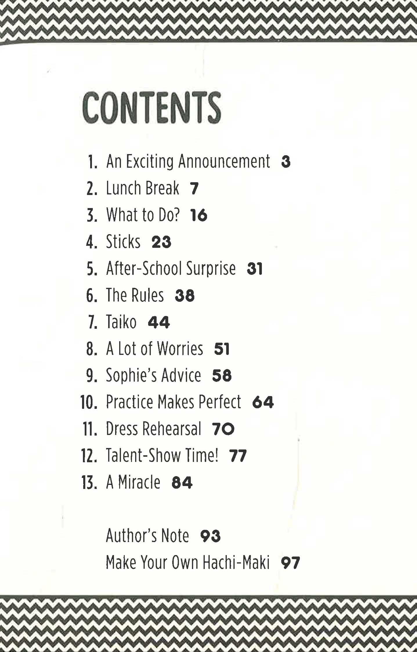 It's talent show time at school, and eight-year-old Jasmine Toguchi is excited to show her stuff. But as she thinks about her strengths-tree-climbing, mochi-making, collage-none of them feel quite right to perform on stage. Jasmine's friends already have a talent: Tommy yo-yos, Daisy dances, and Linnie plays piano. Plus, Maggie Milsap (aka Miss Perfect) is saying she'll have the best talent. When Jasmine's mom introduces her to the taiko, a traditional Japanese drum, Jasmine finally finds an activity that feels just right. But will she be good enough at taiko in time to beat Maggie Milsap? Join Jasmine as she discovers her talent-and the difference between being the best and trying your best.