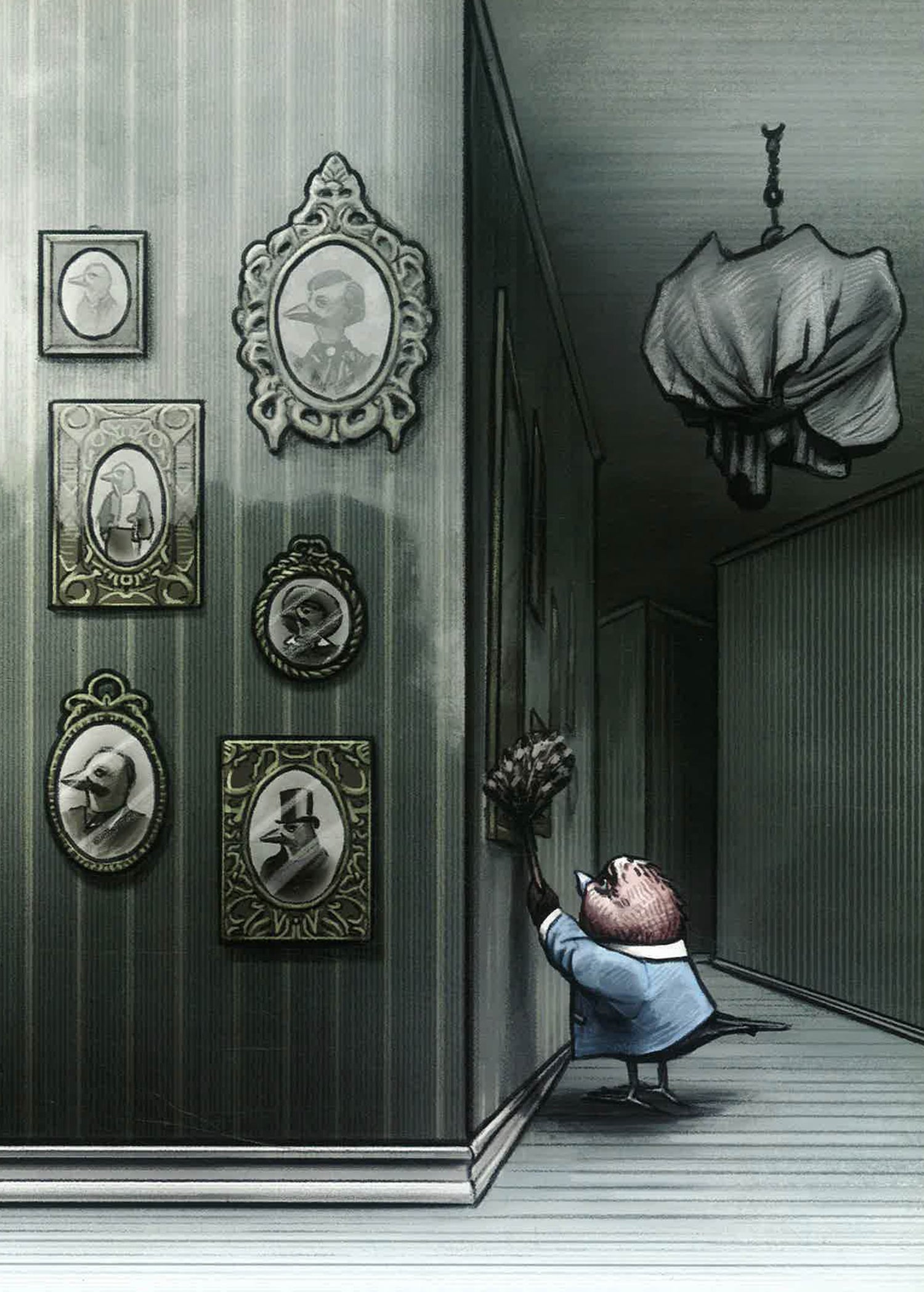 Disney meets Kafka in this beautiful, intense, original tale! The story of a very small and very scared little bird, who lives a lonely, isolated life in a great big house with his infirm mother. He's never been outside the house, curious but terrified of the world outside, and he will never leave if his mother has a say about it.