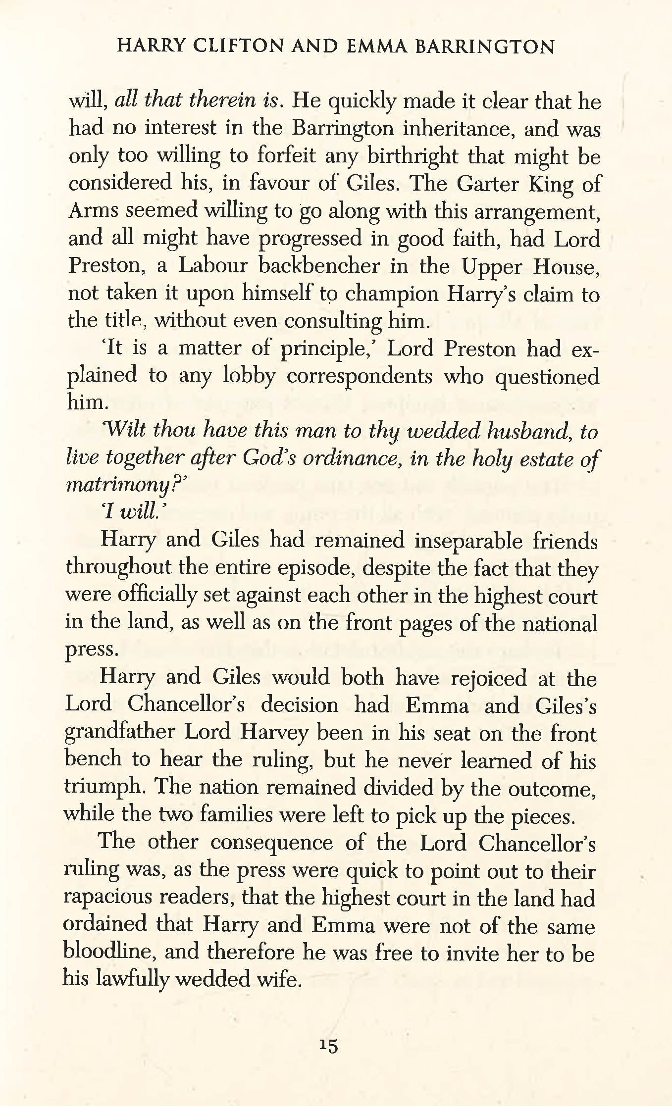 1945. The vote in the House of Lords as to who should inherit the Barrington family fortune has ended in a tie. The Lord Chancellor's deciding vote will cast a long shadow on the lives of Harry Clifton and Giles Barrington.