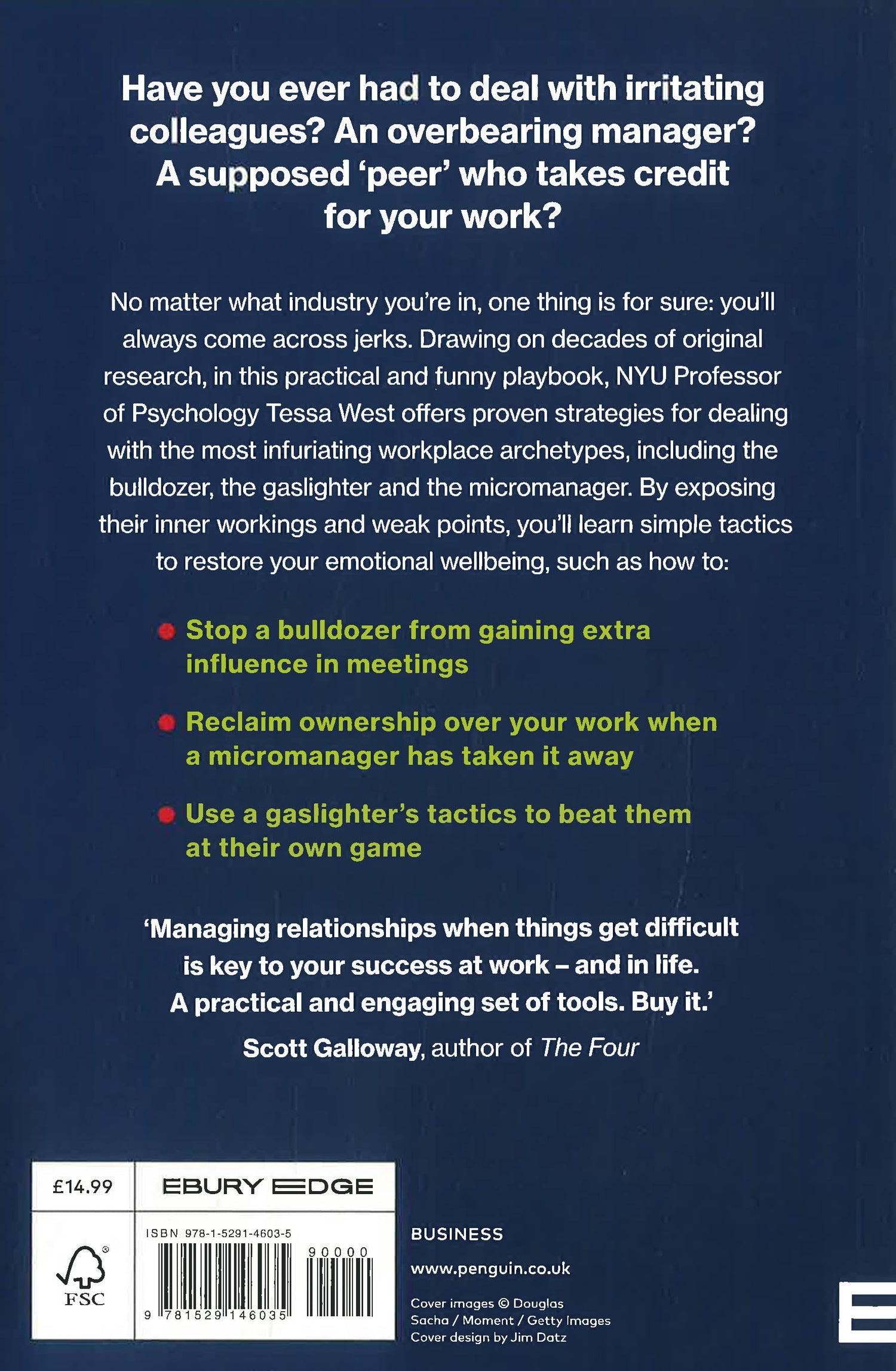 Social psychologist Tessa West has spent years leveraging science to help people solve interpersonal conflicts in the workplace. What she discovered is that most of our go-to tactics don’t work because they fail to address the specific motivations that drive bad behavior. In this book, she takes you on a rollicking deep dive of the seven jerks you’re most likely to encounter at the office, drawing on decades of original research to expose their inner workings and weak points - and ultimately deliver an effective game plan for stopping each type before they take you down with them.