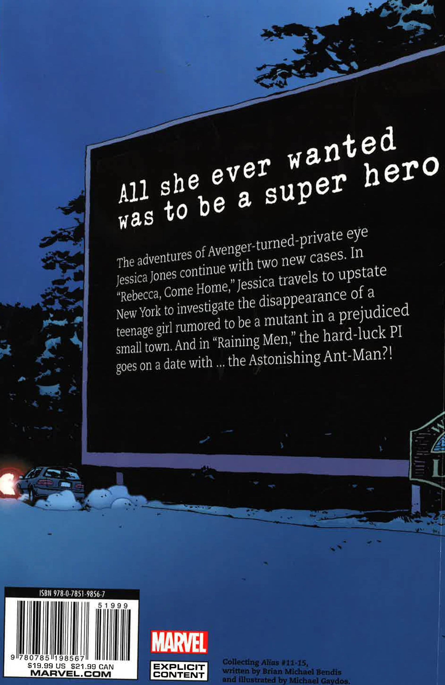 All she ever wanted was to be a super hero. But life had other plans for Jessica Jones. Now, the adventures of the would-be Avenger turned bitter superpowered private eye continue with two new cases. In "Rebecca, Come Home," Jessica travels to upstate New York to investigate the disappearance of a teenage girl rumored to be a mutant in a prejudiced small town - but a murder mystery and a drunken, ill-advised fling might complicate matters somewhat. And in "Raining Men," the hard-luck PI goes on a date with...the Astonishing Ant-Man?!
