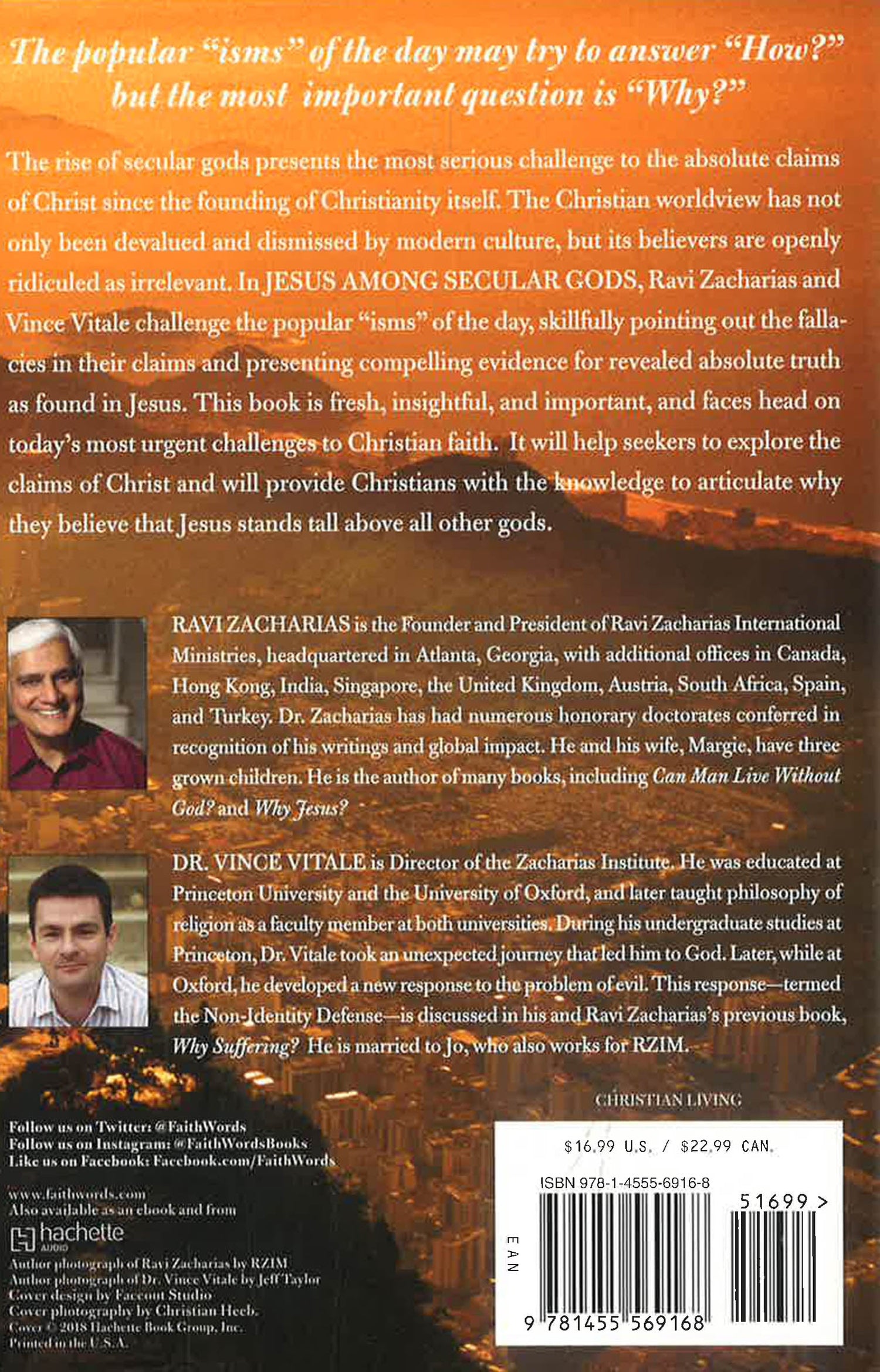 The rise of these secular gods presents the most serious challenge to the absolute claims of Christ since the founding of Christianity itself. The Christian worldview has not only been devalued and dismissed by modern culture, but its believers are openly ridiculed as irrelevant. In Jesus Among Secular Gods, Ravi Zacharias and Vince Vitale challenge the popular "isms" of the day, skillfully pointing out the fallacies in their claims and presenting compelling evidence for revealed absolute truth as found in Jesus. This book is fresh, insightful, and important, and faces head on today's most urgent challenges to Christian faith. It will help seekers to explore the claims of Christ and will provide Christians with the knowledge to articulate why they believe that Jesus stands tall above all other gods.