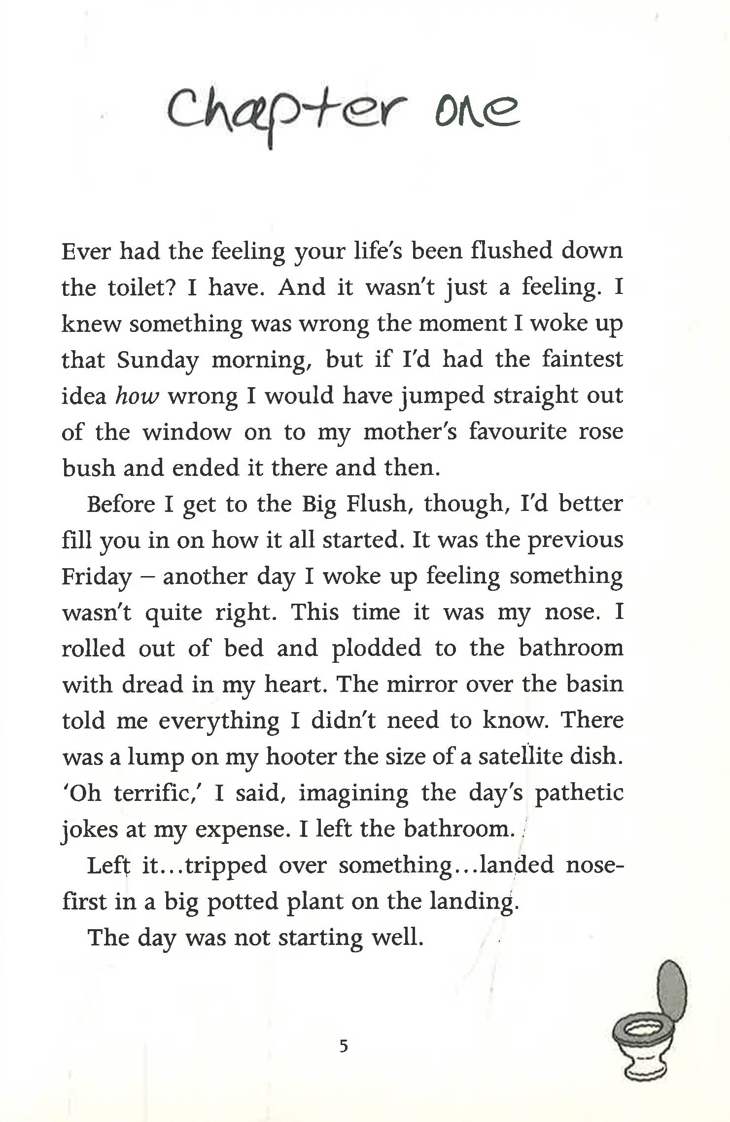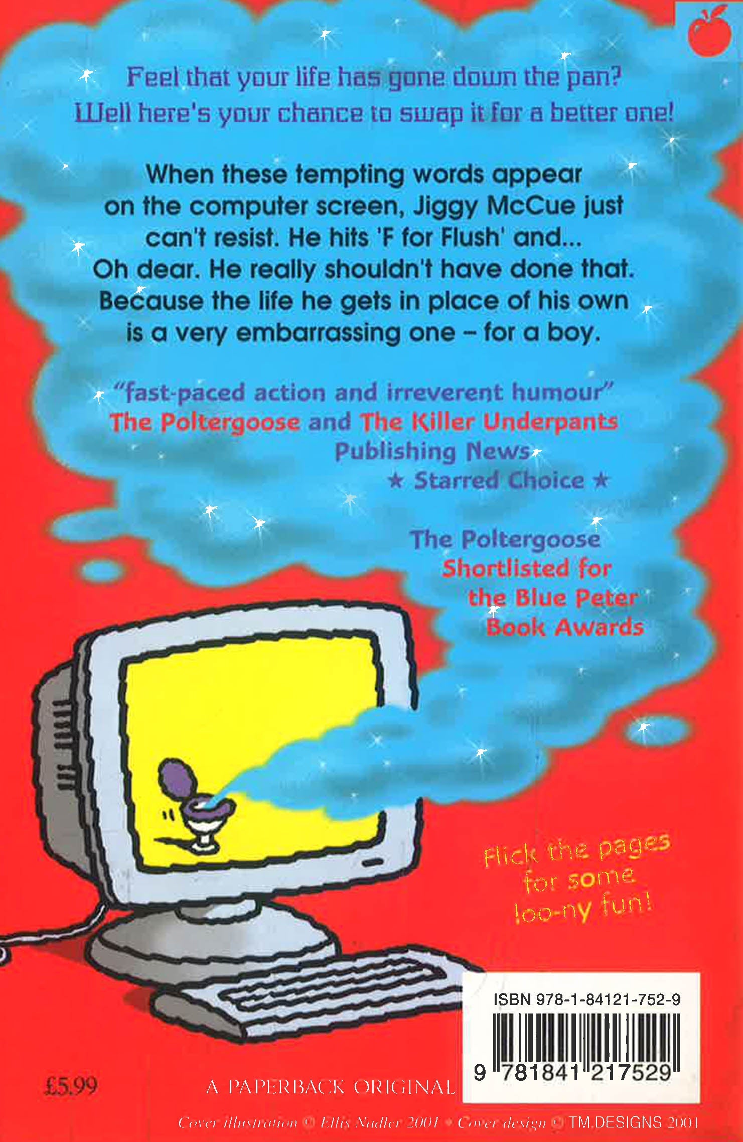 "Feel that your life has gone down the pan? Well here's your chance to swap it for a better one!" When these tempting words appear on the computer screen, Jiggy McCue just can't resist. He hits 'F for Flush' and...Oh dear. He really shouldn't have done that. Because the life he gets in place of his own is a very embarrassing one - for a boy. Another loo-ny adventure with The Three Musketeers! "Fast paced action and irrverent humour...Michael Lawrence has a very quirky talent, given full rein here.." Publishing News Starred Choice (The Poltergoose and The Killer Underpants)