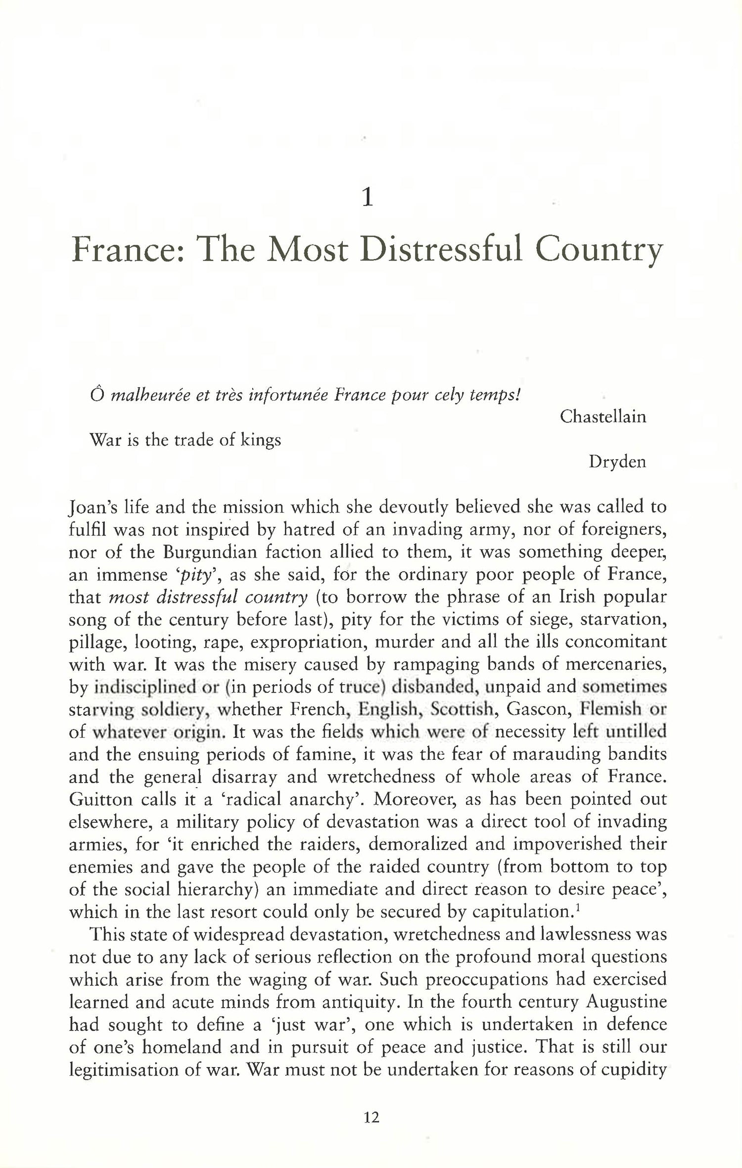 Joan of Arc's life and death mark a turning point in the destiny both of France and England and the history of their monarchies. 'It is a great shame,' wrote Etienne Pasquier in the late sixteenth century, 'for no one ever came to the help of France so opportunely and with such success as that girl, and never was the memory of a woman so torn to shreds.'