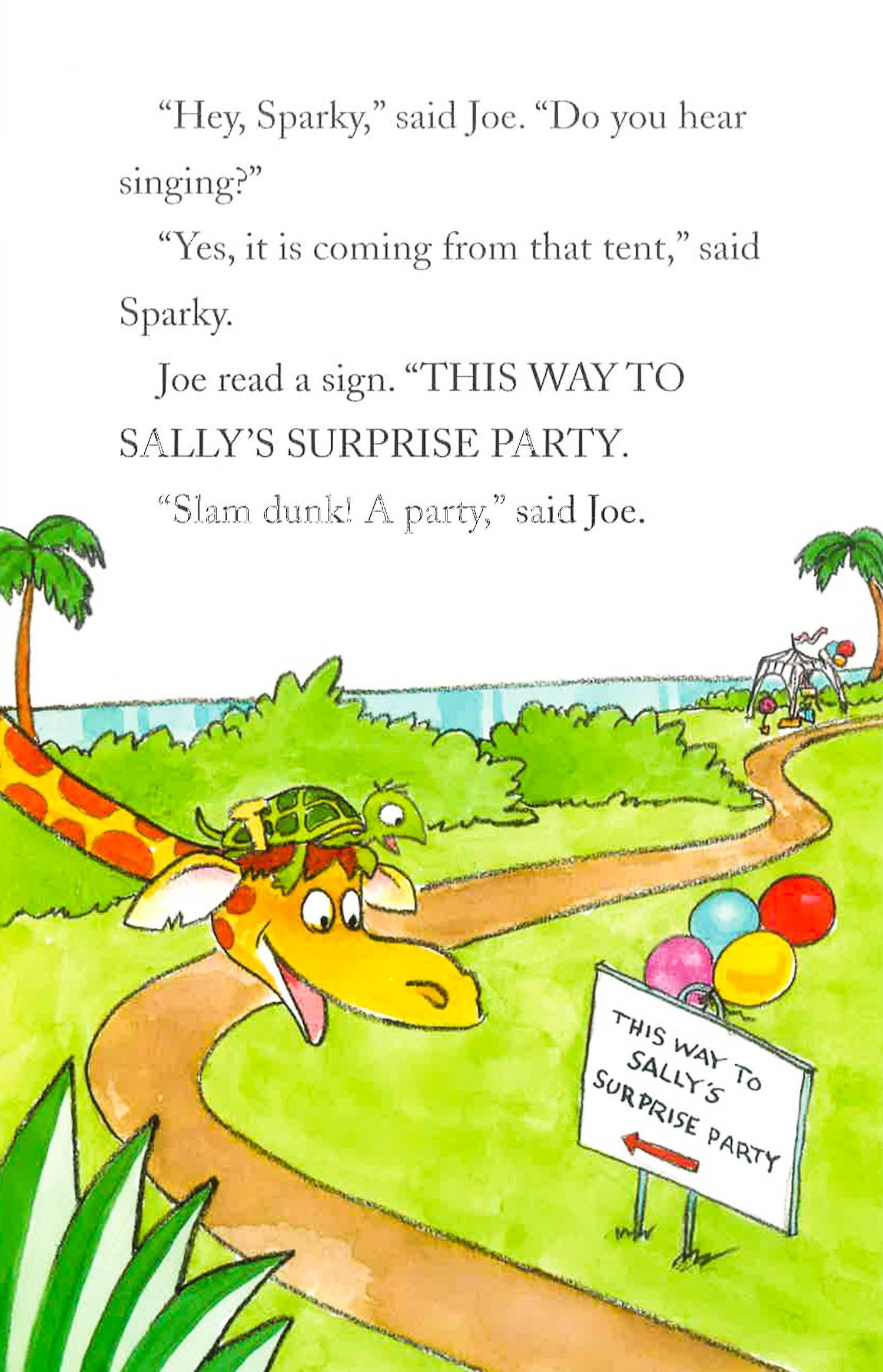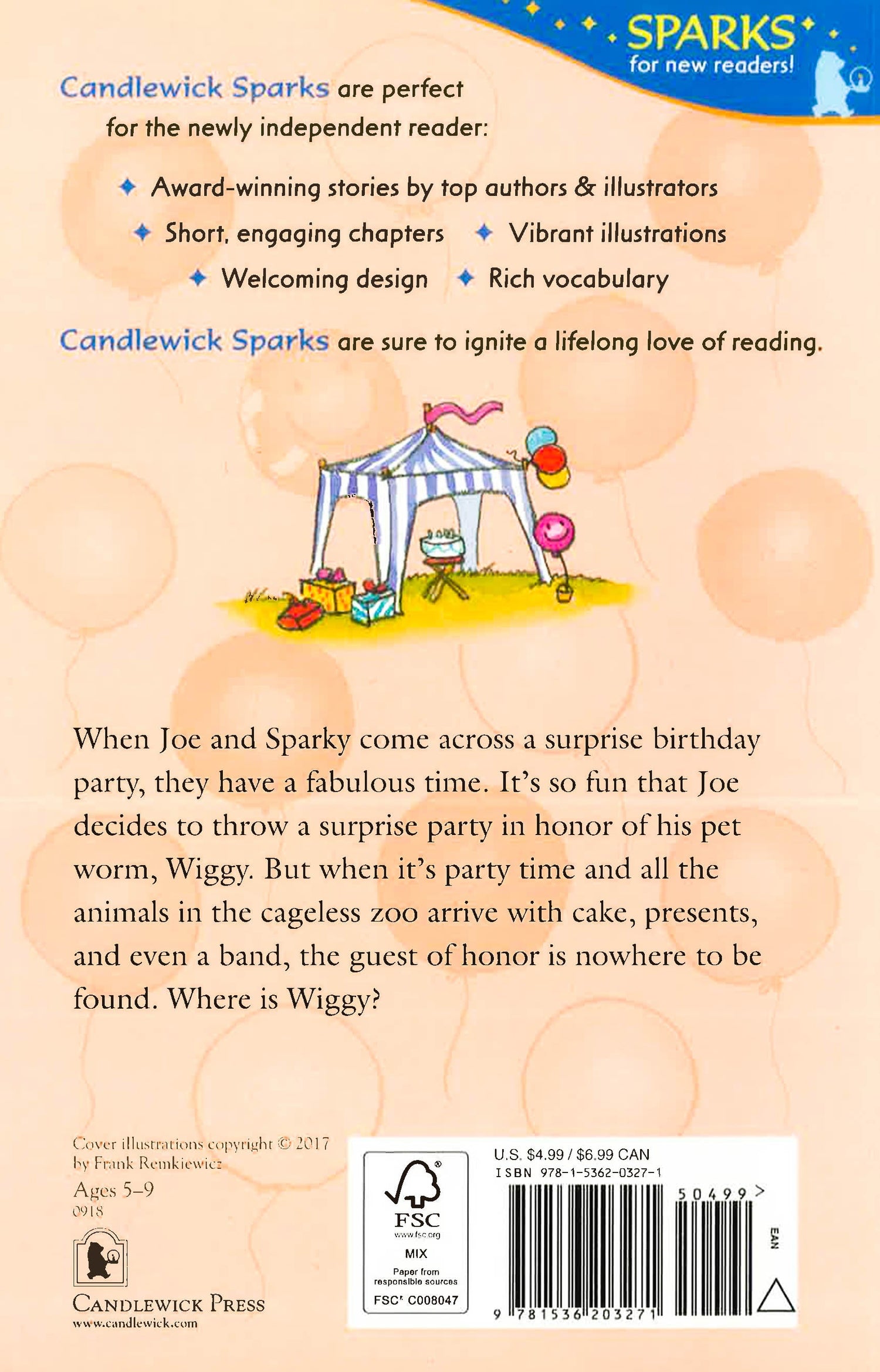 One day Joe, an exuberant giraffe, hears a commotion coming from another part of the famous cageless zoo he calls home. Joined by his small, green, slightly more serious turtle friend, Sparky, Joe discovers the source of the hullabaloo: a group of children -- or noisy short people, as Joe and Sparky call them -- having a party. Inspired, Joe decides to throw a party for his pet worm, Wiggy. There's just one problem: Sparky is not entirely sure if Wiggy even exists! What will happen when every animal in the zoo shows up to Wiggy's party with presents and cake? Worm or no worm, this silly, satisfying tale is sure to leave new readers smiling.