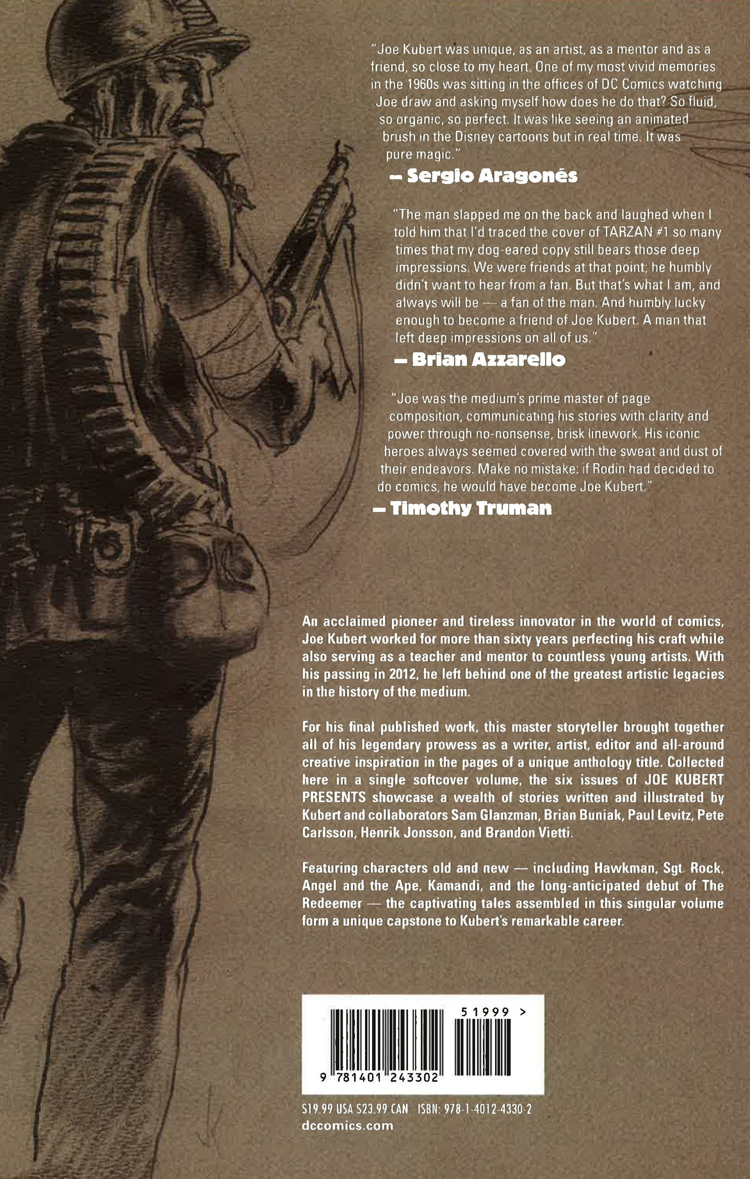 For over seven decades, Joe Kubert helped create some of the most memorable characters and stories in history. Now, the legendary, industry-defining creator unleashes an anthology-style Graphic Novels & Comics with original stories with far-ranging characters and settings. Included in this new collection are tales featuring heroes from his most famous works, Sgt. Rock and Hawkman, as well as the gritty war epics he is best known for. Don't miss this new Graphic Novels & Comics, with contributions from Brian Buniak and Sam Glanzman.
