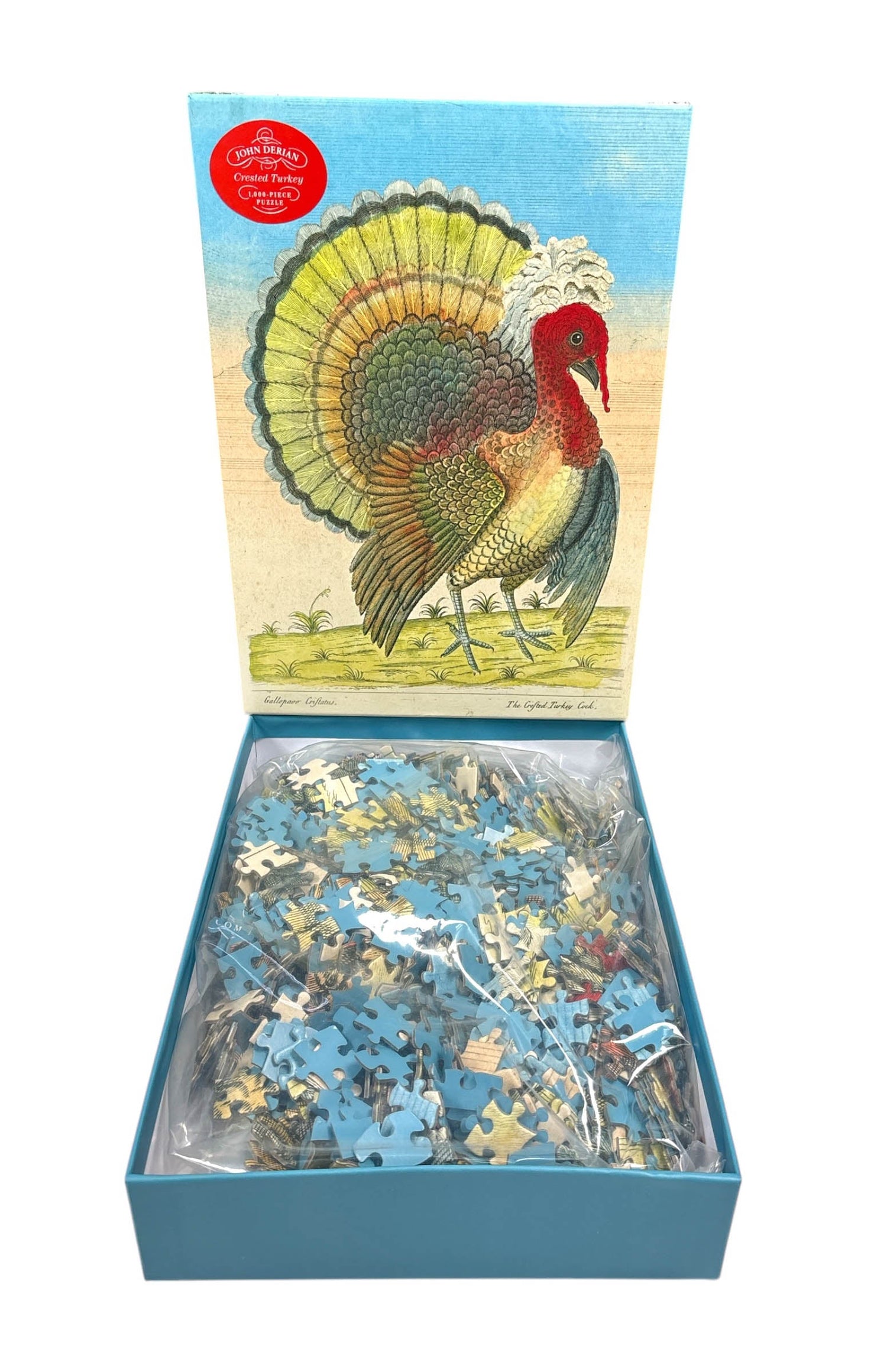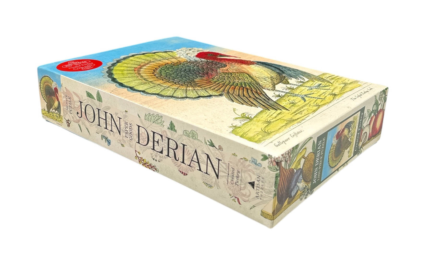 It’s time for a new Thanksgiving tradition. After the pies, after the contented sighs, keep the reverence for the day going with this singularly stunning puzzle. Straight from the collection of John Derian, the artist and designer whose work with printed images of the past transports the viewer to another time and place, Crested Turkey is a nineteenth-century chromolithographic portrait that confirms the wonder and wisdom behind Benjamin Franklin’s famous remark that in comparison with the bald eagle, the wild turkey is a much more respectable and courageous creature. And so handsome too!