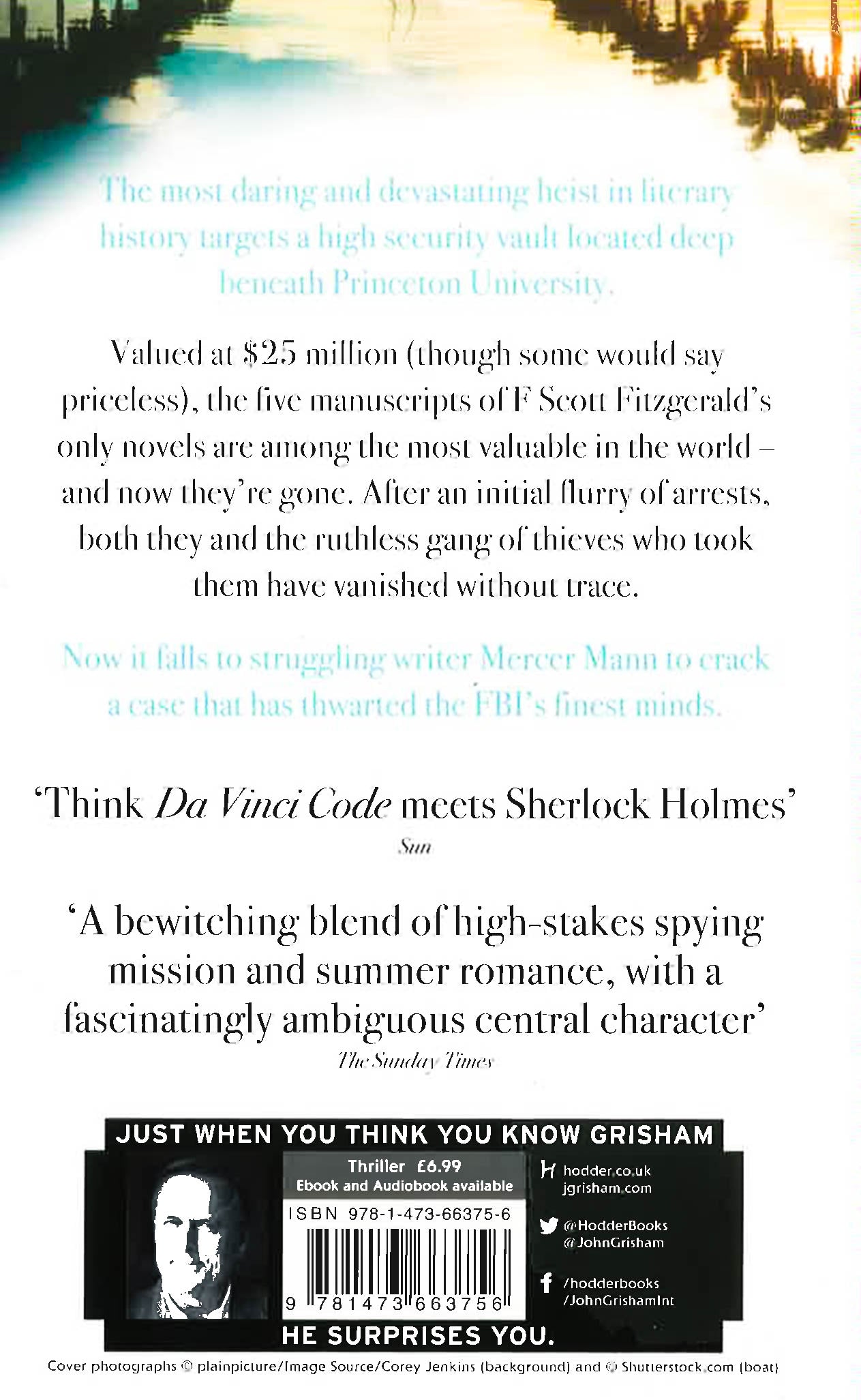 The sensational new thriller from bestselling author John Grisham. *****The Sunday Times 'Thriller of the Month', Mail on Sunday 'Thriller of the Week' and Sun 'Best for Mystery-Lovers'*****Someone is about to make a killing . . .The most daring and devastating heist in literary history targets a high security vault located deep beneath Princeton University.Valued at $25 million (though some would say priceless) the five manuscripts of F Scott Fitzgerald's only novels are amongst the most valuable in the world. After an initial flurry of arrests, both they and the ruthless gang of thieves who took them have vanished without trace.Now it falls to struggling writer Mercer Mann to crack a case that has thwarted the FBI's finest minds.Praise for Camino Island'A bewitching blend of high-stakes spying mission and summer romance, with a fascinatingly ambiguous central character' - The Sunday Times'The gripping plot will have you devouring the chapters in such a frantic fashion you'll begin to wonder if you are somehow complicit in this perfect crime' - Heat'Grisham shows charm, wit and a light touch' - The Times