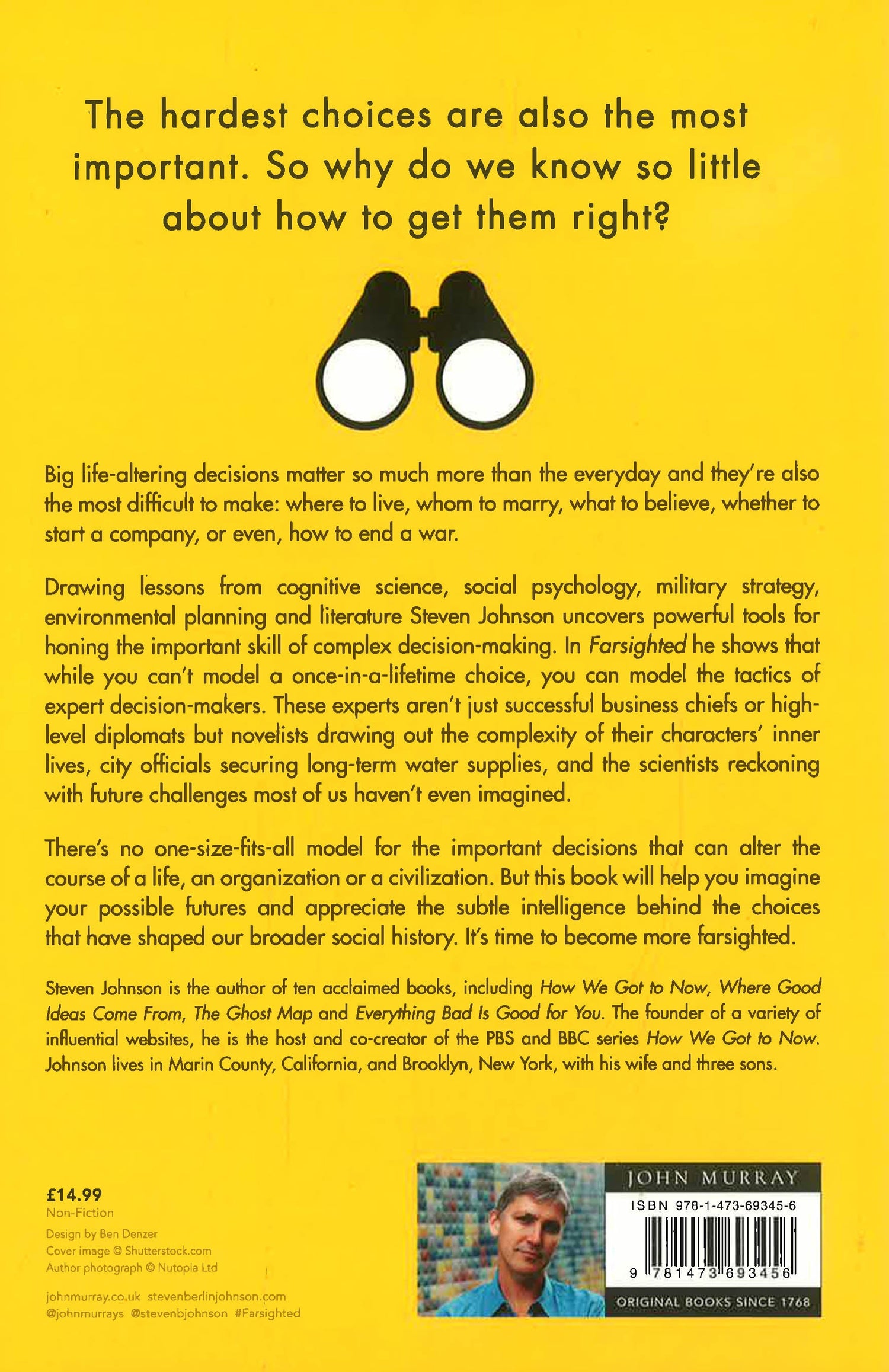 Full of the beautifully crafted storytelling and novel insights that Steven Johnson's fans know to expect, Farsighted draws lessons from cognitive science, social psychology, military strategy, environmental planning, and great works of literature. Everyone thinks we are living in an age of short attention spans, but we've actually learned a lot about making long-term decisions over the past few decades. Johnson makes a compelling case for a smarter and more deliberative decision-making approach. He argues that we choose better when we break out of the myopia of single-scale thinking and develop methods for considering all the factors involved.