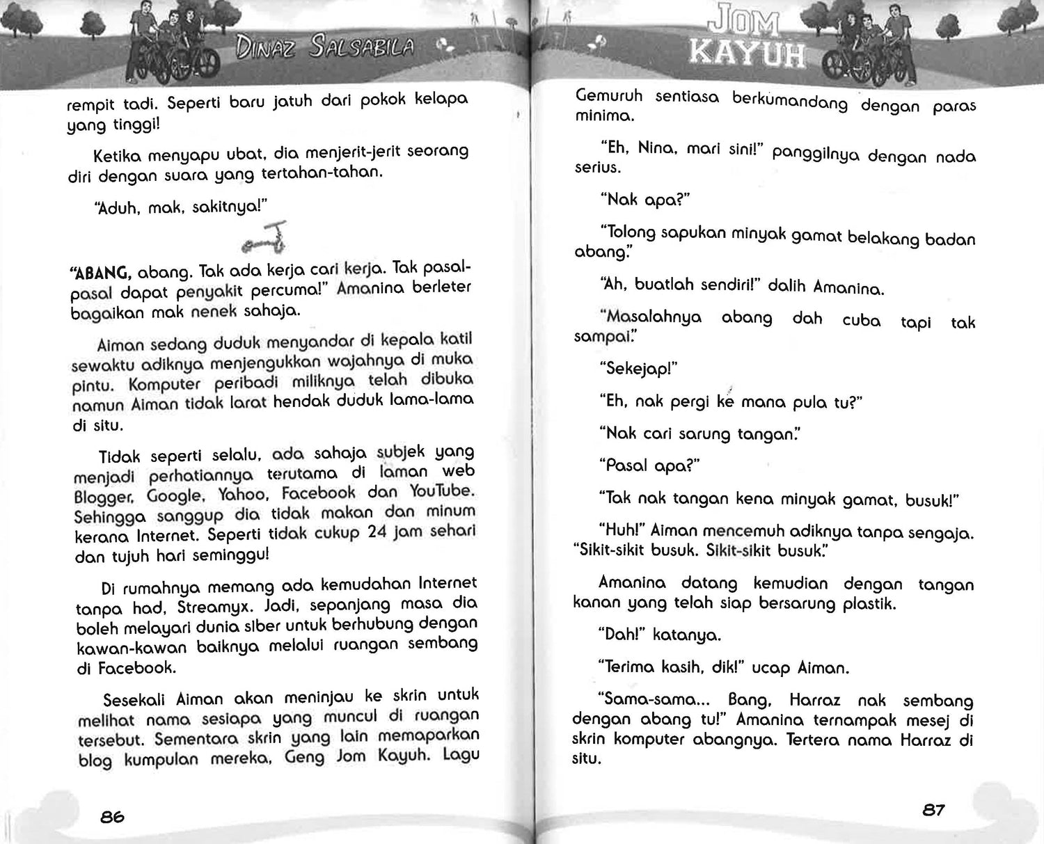 Aiman memang juara kayuh. Sebut saja aksi apa, kayuh tanpa pegang pemegang, berdiri atas basikal, angkat tayar depan, semuanya boleh! Tapi tanpa disangka satu
