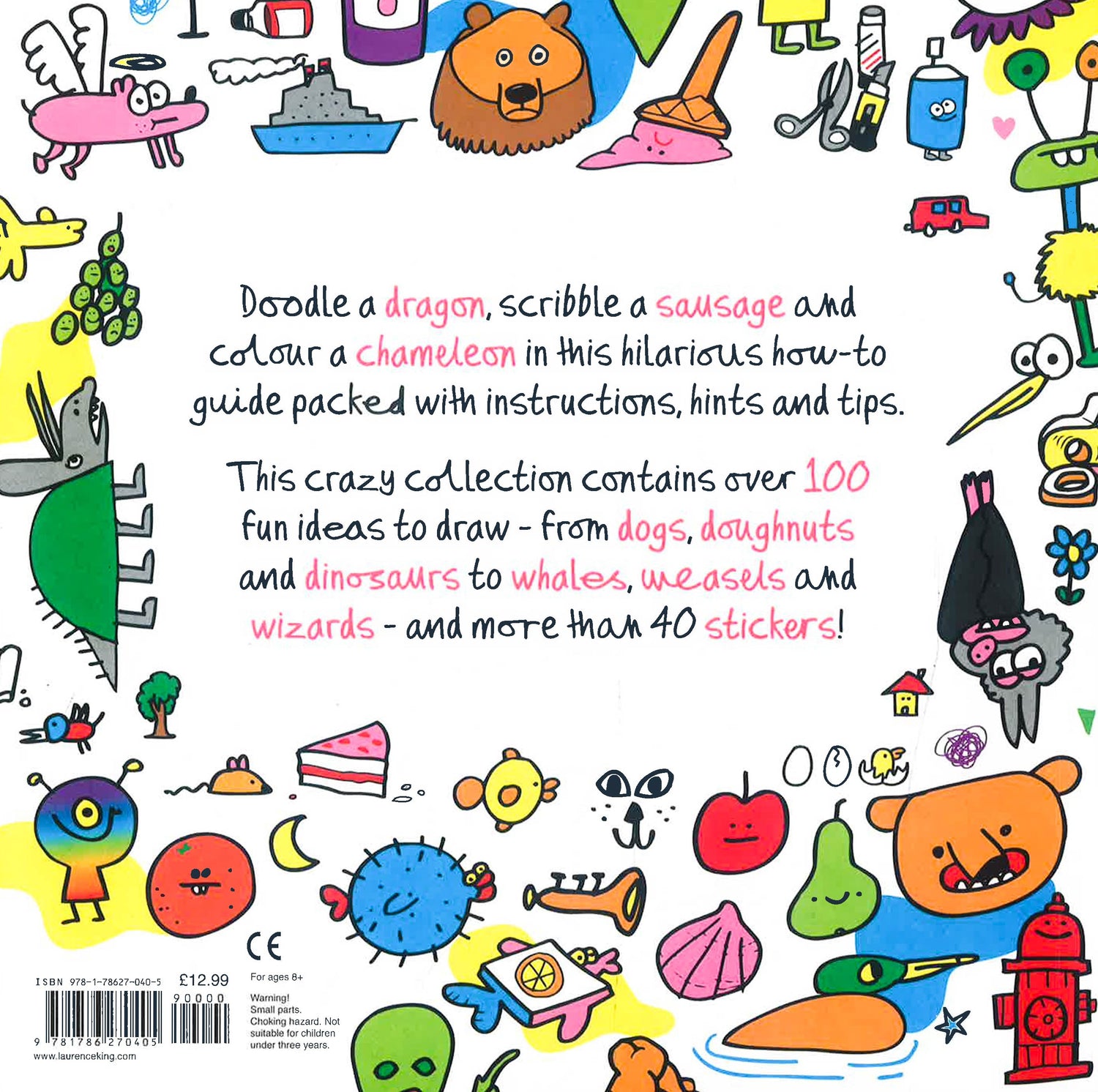 Jon Burgerman shows you how to doodle a dragon, scribble a sausage and colour a chameleon in this hilarious how-to guide! Inspired by Jon's popular Snapchat Daily Doodle, this book is packed with instructions, hints and tips to create your own scribbletastic doodles, from dogs, doughnuts and dinosaurs to whales, wigs and wizards. This crazy collection contains over 100 silly ideas to scribble, funny things to spot along the way, and more than 40 stickers!