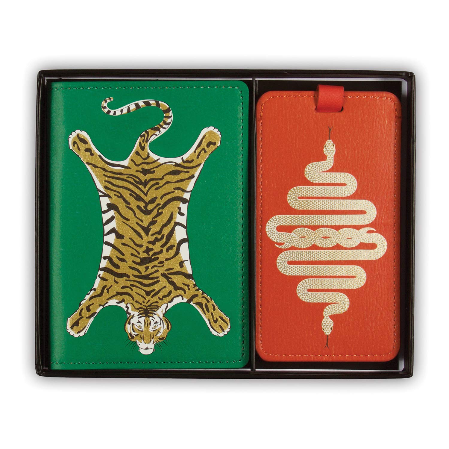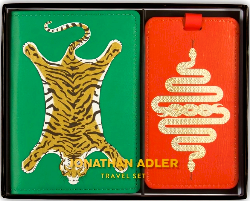 Jonathan Adler is a design company that creates luxe and livable interiors and chic products that are synonymous with modern American glamour. The striking design of the Jonathan Adler Safari Travel Set from Galison makes it easy to locate your bag and protects your passport from unnecessary wear and tear.