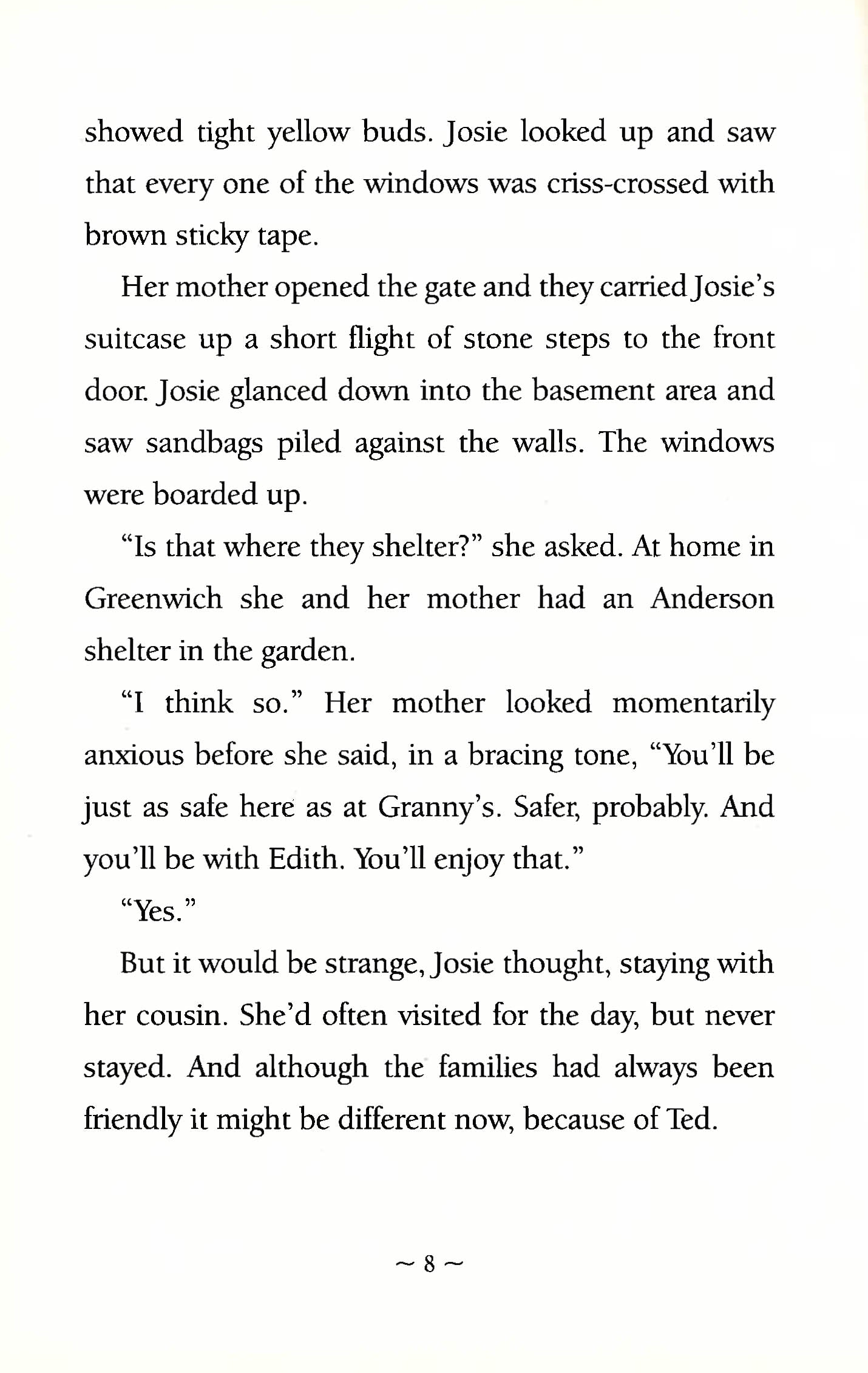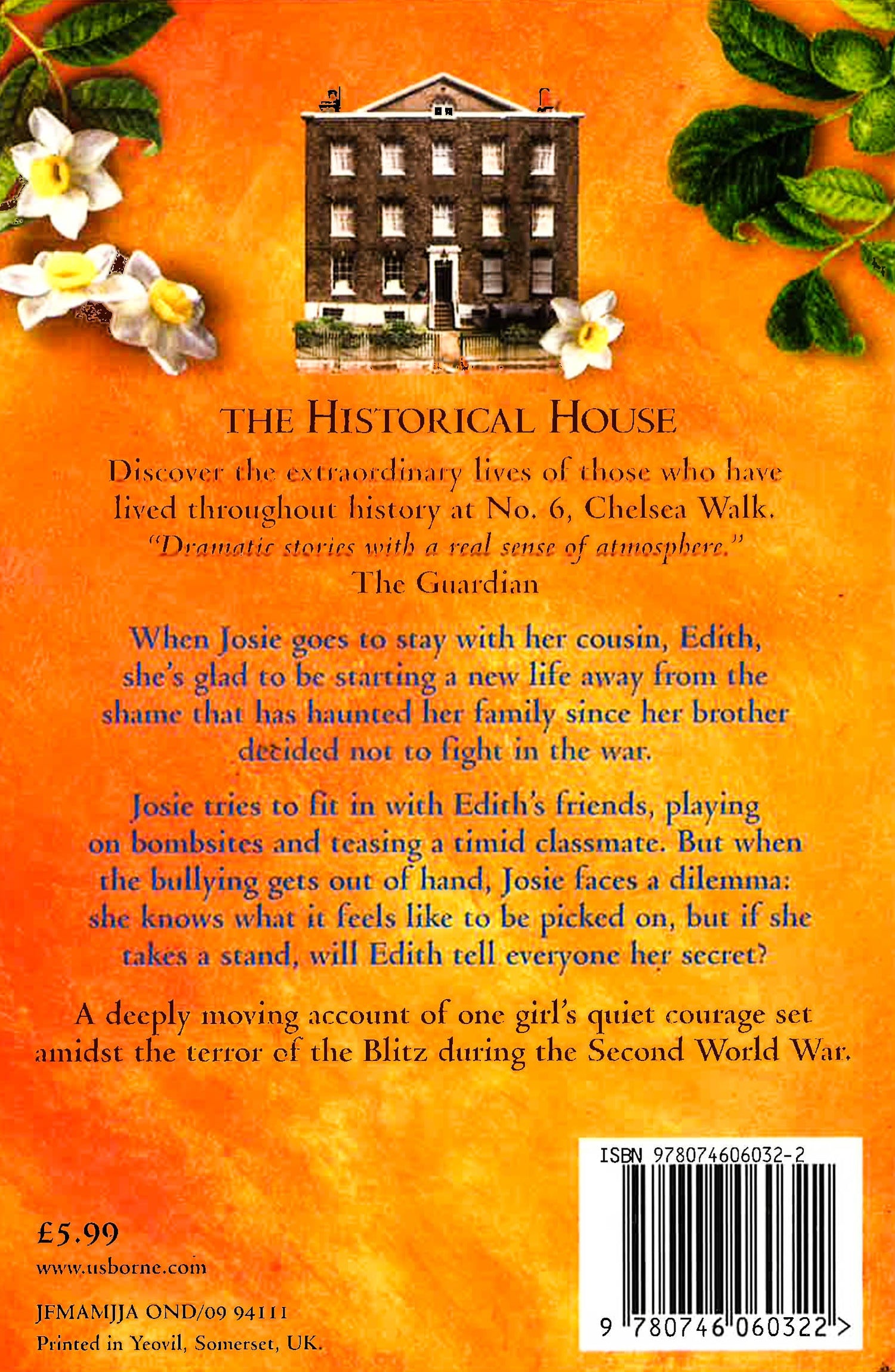 The Historical House is a unique trilogy of novels by three highly regarded authors. Each novel charts the life and times of the house at 6 Chelsea Walk, London, and the girls who lived there through three important periods of history. Synopsis It is 1941: London is suffering from the Blitz and the country is gripped by patriotic fervour. Josie finds it hard to understand her brother's decision to be a conscientious objector, especially as it causes trouble for their family. But when she moves to a new school and gets drawn into tormenting one of her classmates, Josie learns what it means to stand up for her own beliefs.