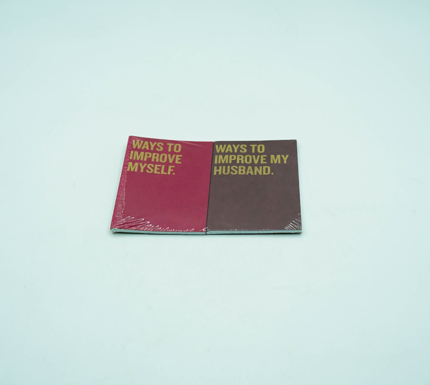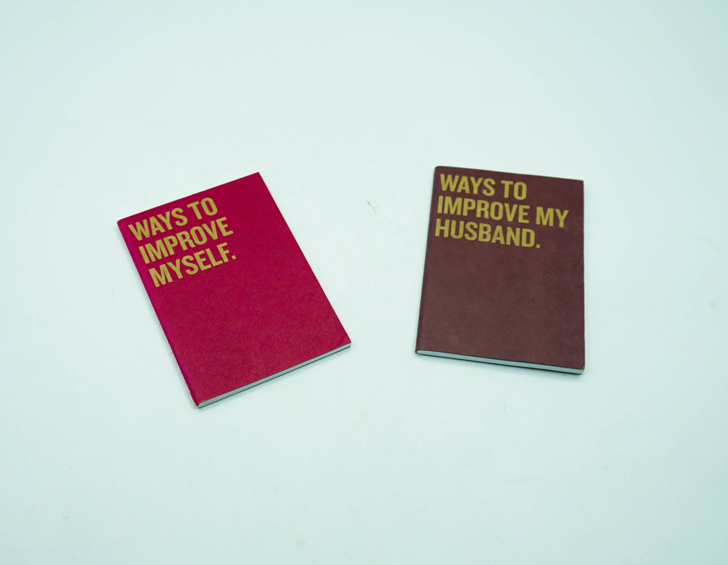 This set of two blank journals is sure to inspire a double-take; one journal cover is titled Ways to Improve Myself and the other is titled Ways to Improve My Husband. Printed with bold typography on craft-paper covers, these pocket-sized journals are quite witty, a little gritty, and will appeal to people who appreciate stationery with a point of view.