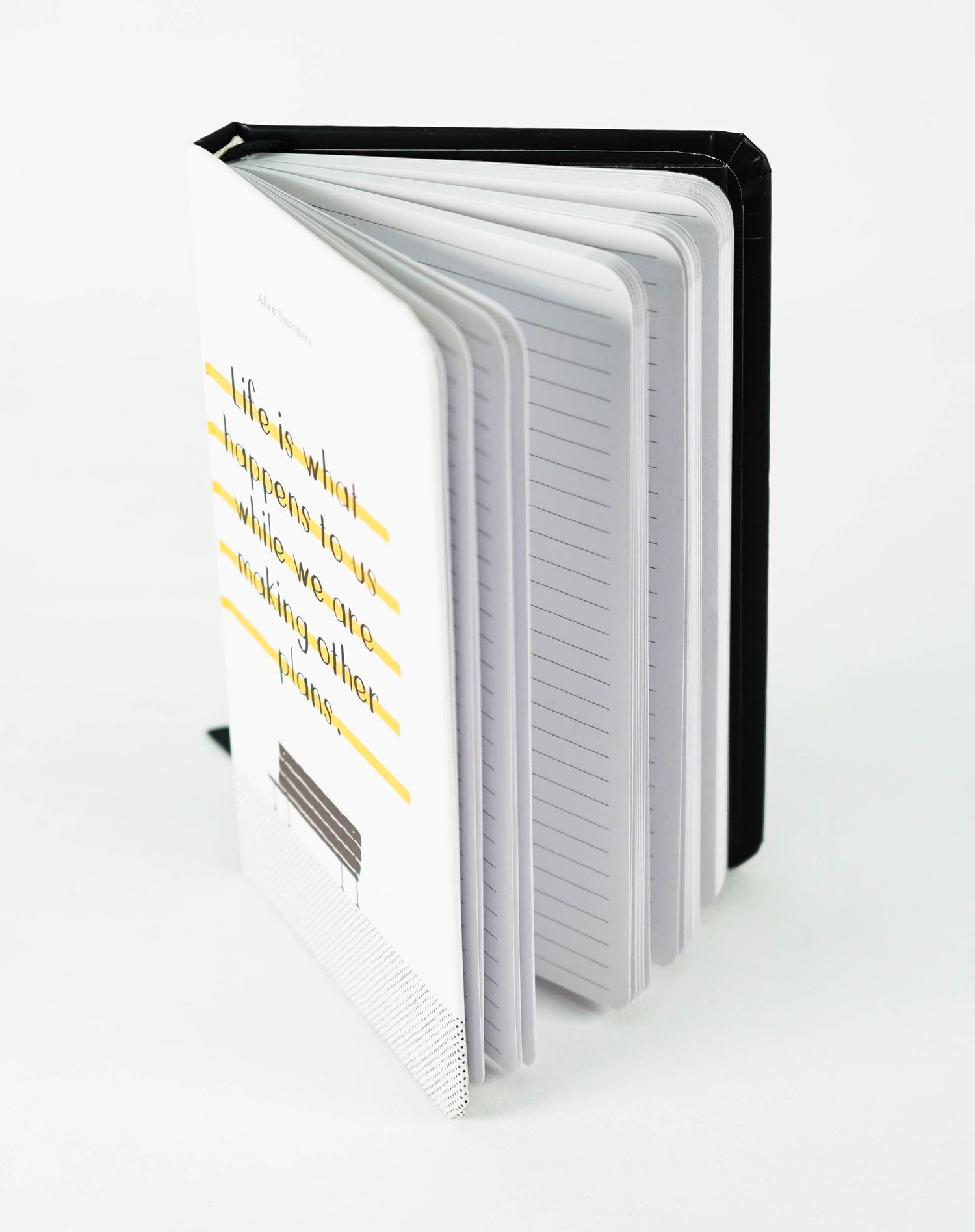A fun-size journal notebook with creative cover for your note-taking needs.