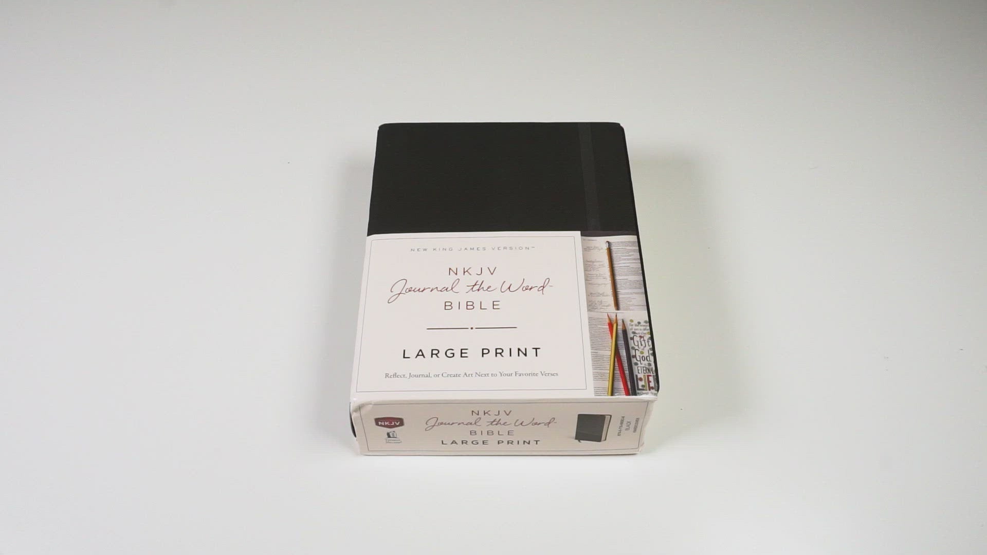 The NKJV Journal the Word (TM) Bible, Large Print allows you to creatively express yourself every day with plenty of room for notes or verse art journaling next to your treasured verses. With unique and sophisticated covers, this single-column large print edition features thick cream-colored paper with lightly ruled lines in the extra-wide margins, perfect to reflect on God's Word and enhance your study.Excellent for a gift or for personal use, it can also be a cherished heirloom to pass on to future generations with your personal writings inside!Features of this treasured Bible include:Lined, wide margins for notes, reflections and artThicker cream paper for enduring note-takingLarge print 10-pt font eliminates eye strain when readingWords of Christ in redLays flat in your hand or on your deskRibbon marker