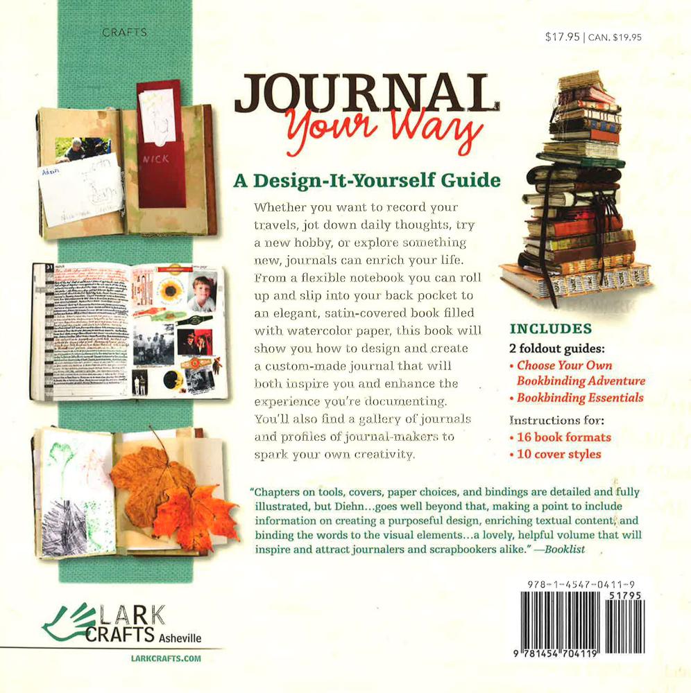 Custom tailor a journal that's just right for you! With step-by-step illustrations and instructions for more than sixteen formats and 10 cover styles, Gwen Diehn celebrates the art of making and using a personalized journal. Inspiring images showcase a rich variety of working journals, fascinating sidebars introduce longtime journal keepers, and nine lucky recipients of customized, handcrafted journals from the author share their own pages. Two additional insert booklets, Bookbinding Essentials and Choose Your Own Bookbinding Adventure, explain basic techniques and guide you on your journaling adventure. Whether you're an artist in need of a sketchbook or a vacationer searching for the perfect place to write notes and store snapshots, you'll find it right here! Previously published in hardcover as Live & Learn: Real Life Journals.
