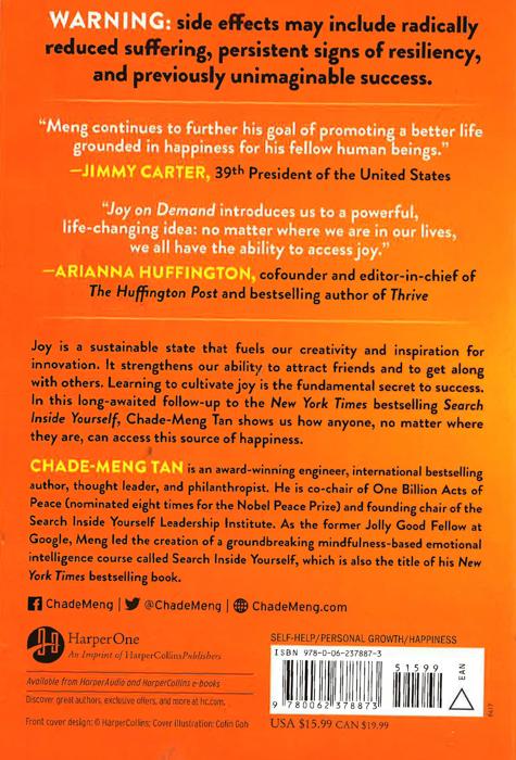 Joy is a sustainable state that fuels our creativity and inspiration for innovation. It strengthens our ability to attract friends and to get along with others. Learning to cultivate joy is the fundamental secret to success. In this long-awaited follow-up to the New York Times bestselling Search Inside Yourself, Chade-Meng Tan shows us how anyone, no matter where they are, can access this source of happiness.