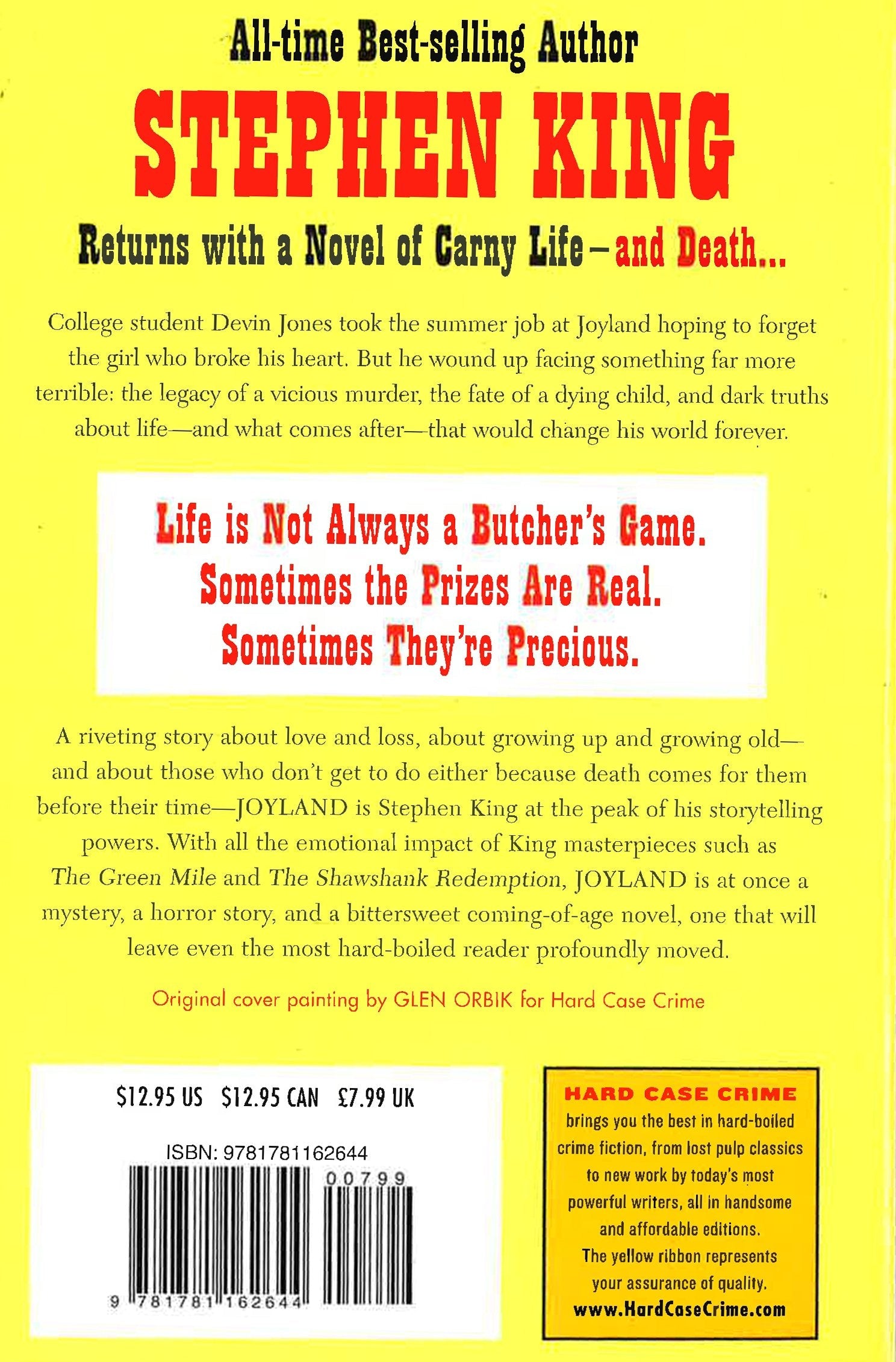 A STUNNING NEW NOVEL FROM ONE OF THE BEST-SELLING AUTHORS OF ALL TIME! Set in a small-town North Carolina amusement park in 1973, Joyland tells the story of the summer in which college student Devin Jones comes to work as a carny and confronts the legacy of a vicious murder, the fate of a dying child, and the ways both will change his life forever. *This book may have shelfwear.