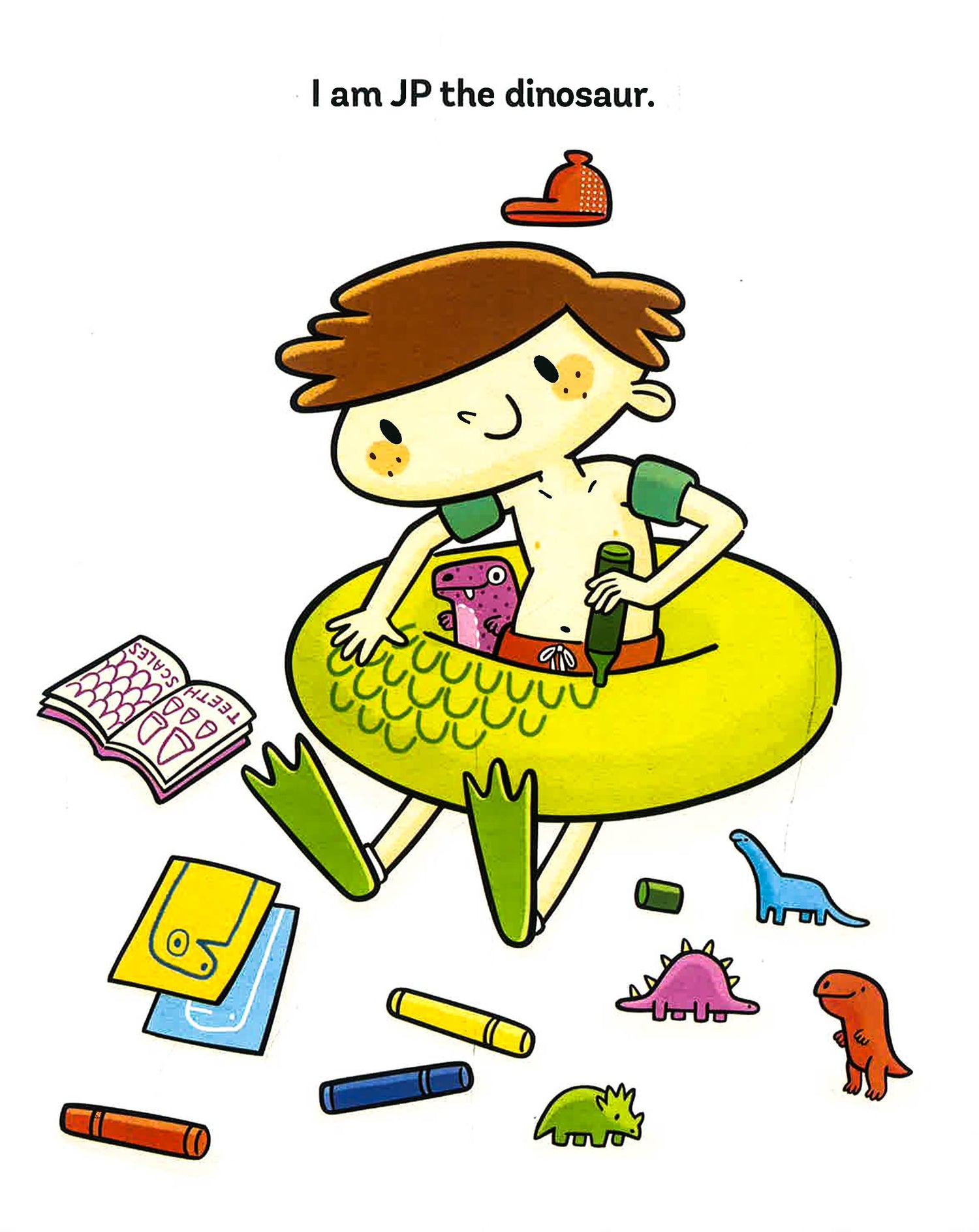 In his third adventure, JP is excited to be at the water park with his family. But when the bossy dinosaur says he can't go down the waterslide with his sister, JP is sad. Using his vivid imagination and a little help from his family and best friend, JP remembers how to have fun again!