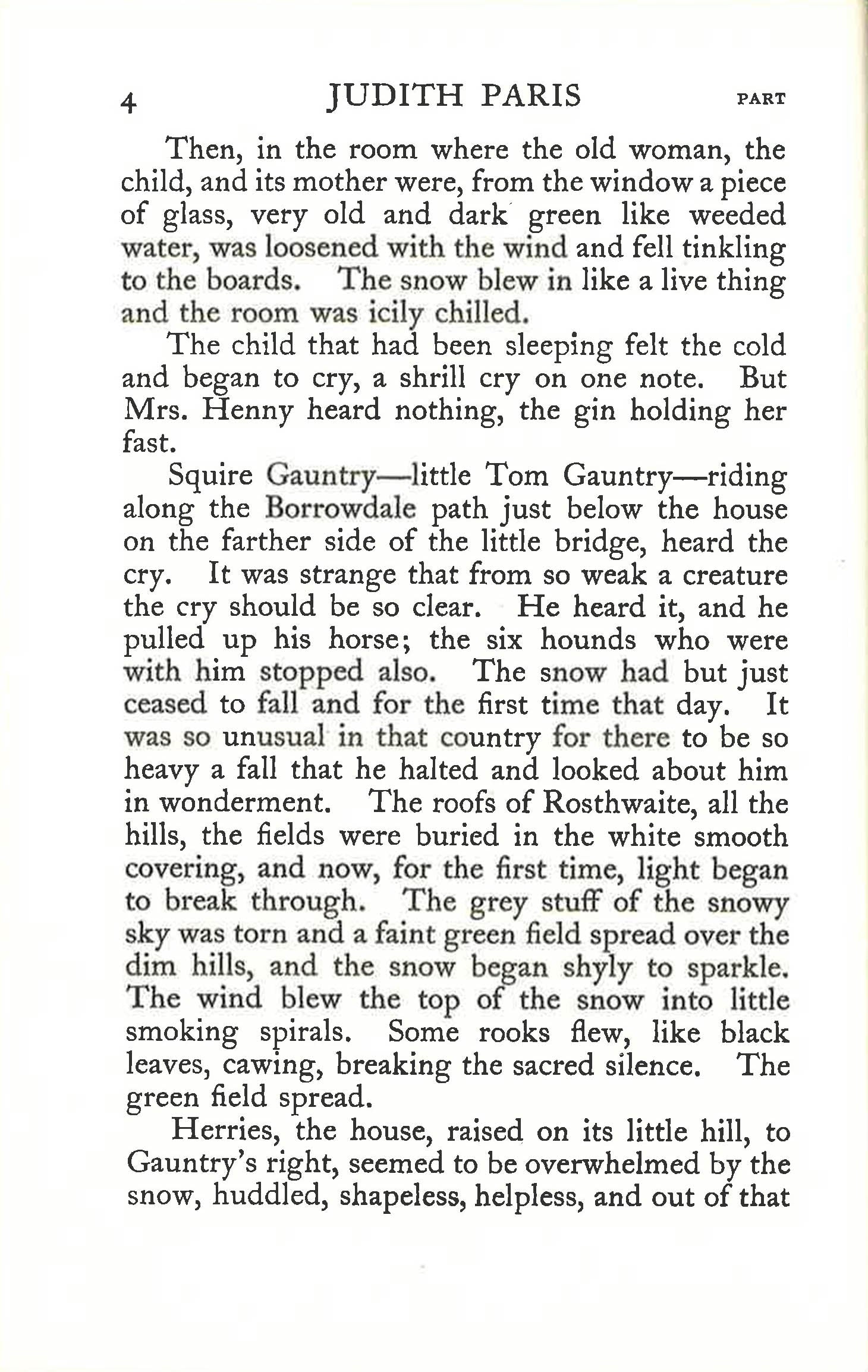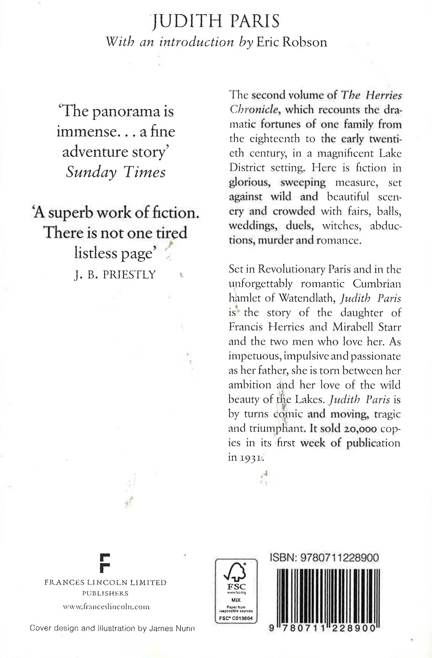Daughter of Frances Herries and Mirabell Starr, Judith was described on publication as 'the most delightful of Walpole's heroines'. As impetuous, impulsive and passionate as her father, she is torn between her ambitions and her love of the wild beauty of the Lakes. Set partly in Paris during the French Revolution, and partly in the unforgettably romantic Cumbrian hamlet of Watendlath, it is the story of the two very different men who love her, and is both comic and moving, by turns tragic and triumphant. The second of the Herries Chronicles, it sold 20,000 copies in its first week of publication in 1931.
