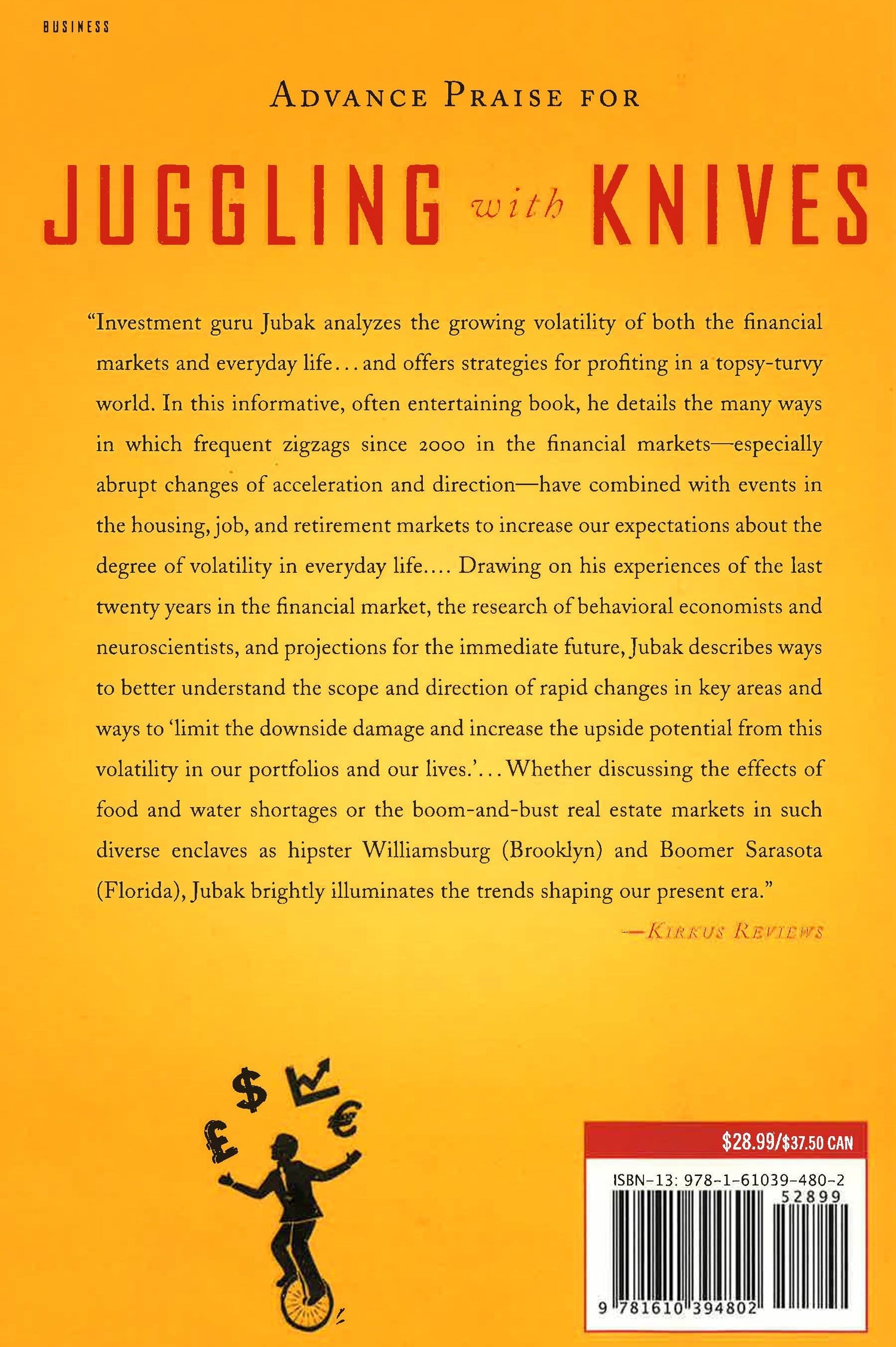 Stunning volatility is the new fact of life" that defines our age. Financial markets fall off cliffs one day, but then stage a recovery the next, only to do it all over again. The switch back and forth is emotionally draining, making us susceptible to irrational responses that can turn manageable problems into huge personal crises. But while there is danger in volatility, there is also the opportunity to profitably juggle the knives that volatility throws your way,with less risk than you might think.The first step toward profiting from volatility is to understand why these radical ups and downs are taking place now. Jim Jubak's deep and broad-ranging analysis looks into not only the financial but also the economic, market, and social trends, showing how they reinforce each other, including: the consequences of global central banks operating as cash machines, a financial system that will not be reformed, China as the world's largest game of three-card monte, the aging of populations around the world and the resulting war between the young and old, and the large bill we will have for the consequences of environmental externalities such as climate change and energy uncertainty.Jubak analyzes these and other trends, providing practical insights and specific investing strategies that show investors how to respect,but not be scared of,market volatility, and how to make smarter investment decisions to profit from and hedge against it.