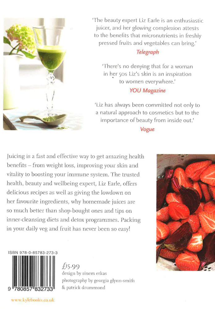 Juicing is a fast and effective way to get amazing health benefits - from weight loss, improving your skin and vitality to boosting your immune system. The trusted health, beauty and wellbeing expert, Liz Earle, offers delicious recipes as well as giving the lowdown on her favourite ingredients, why homemade juices are so much better than shop-bought ones and tips on inner-cleansing diets and detox programmes. Packing in your daily veg and fruit has never been so easy!