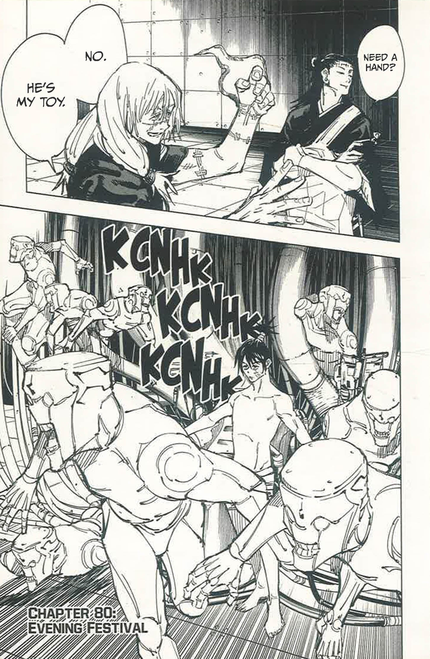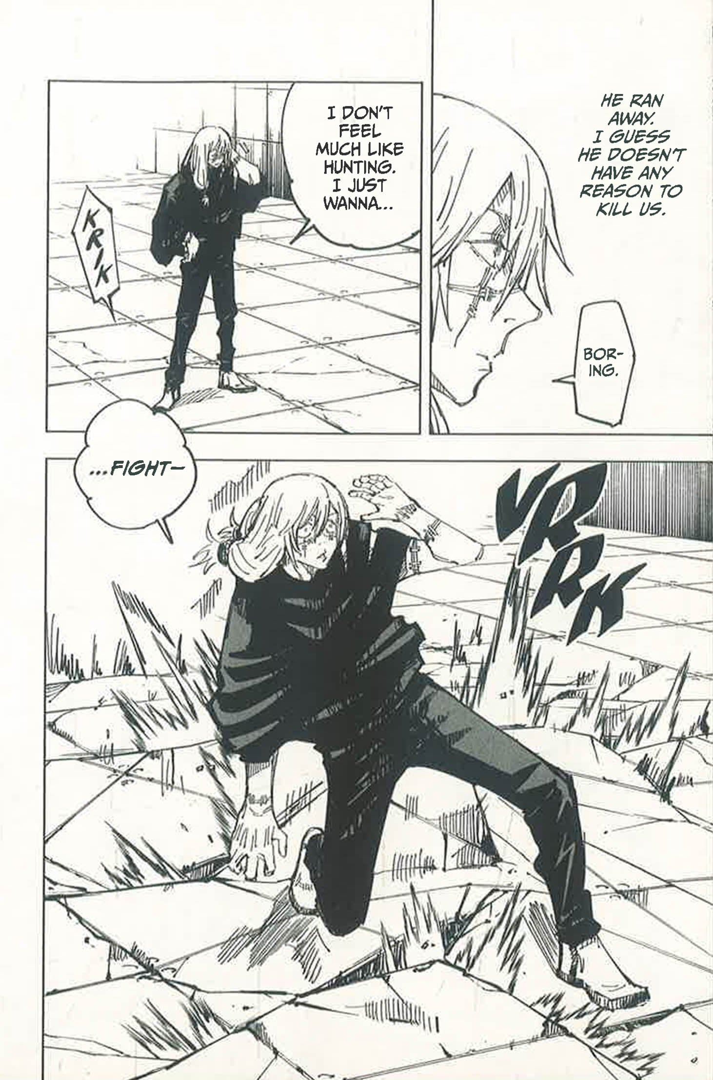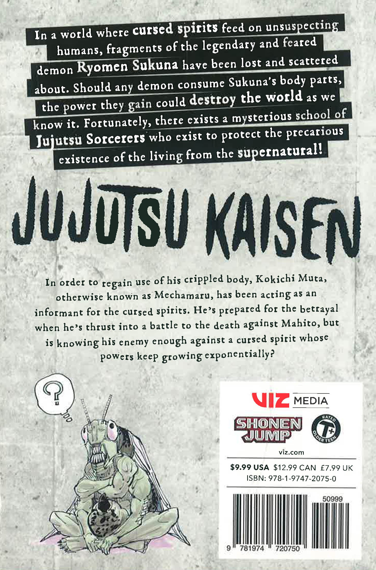 In order to regain use of his crippled body, Kokichi Muta, otherwise known as Mechamaru, has been acting as an informant for the cursed spirits. He’s prepared for the betrayal when he’s thrust into a battle to the death against Mahito, but is knowing his enemy enough against a cursed spirit whose powers keep growing exponentially?