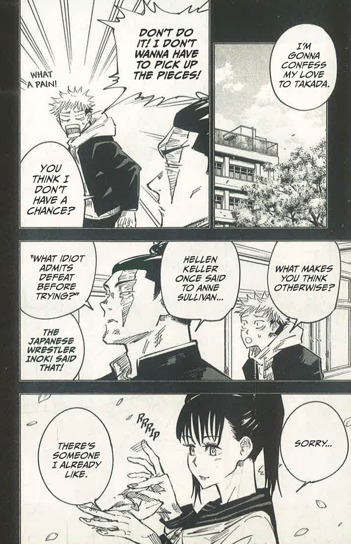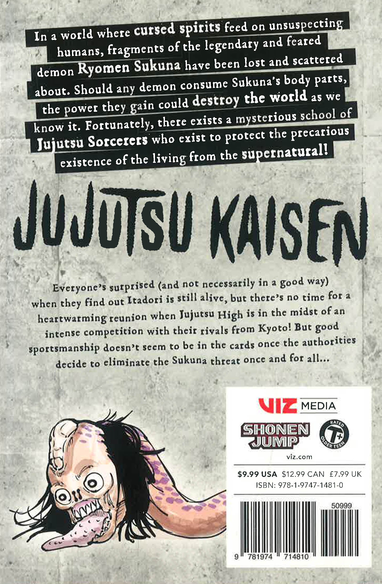 To gain the power he needs to save his friend from a cursed spirit, Yuji Itadori swallows a piece of a demon, only to find himself caught in the midst of a horrific war of the supernatural!In a world where cursed spirits feed on unsuspecting humans, fragments of the legendary and feared demon Ryomen Sukuna have been lost and scattered about. Should any demon consume Sukuna’s body parts, the power they gain could destroy the world as we know it. Fortunately, there exists a mysterious school of jujutsu sorcerers who exist to protect the precarious existence of the living from the supernatural!Everyone’s surprised (and not necessarily in a good way) when they find out Itadori is still alive, but there’s no time for a heartwarming reunion when Jujutsu High is in the midst of an intense competition with their rivals from Kyoto! But good sportsmanship doesn’t seem to be in the cards once the authorities decide to eliminate the Sukuna threat once and for all...