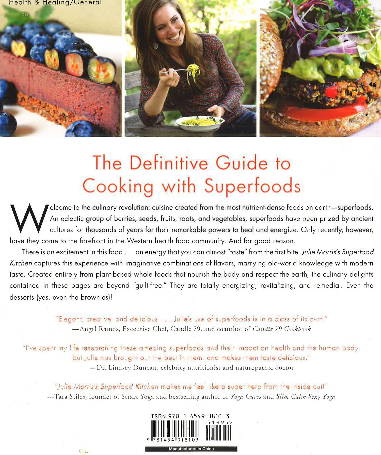 Welcome to the SUPERFOOD culinary revolution! In Julie Morris's Superfood Kitchen, beautiful dishes are entirely composed of plant-based, nutrient-dense, and whole foods that energize, nourish, and taste delicious. Each recipe artfully combines natural ingredients that deliver amazing amounts of antioxidants, essential fatty acids (like omega-3), minerals, vitamins, and more. The mouthwatering superfood meals--from Goldenberry Pancakes to Quinoa Spaghetti with Cashew Cream Sauce and Chard--will make you feel as good as they taste. The pages glow with beautiful color photographs that will inspire home cooks to start enjoying the sumptuous pleasures of earth's best foods.