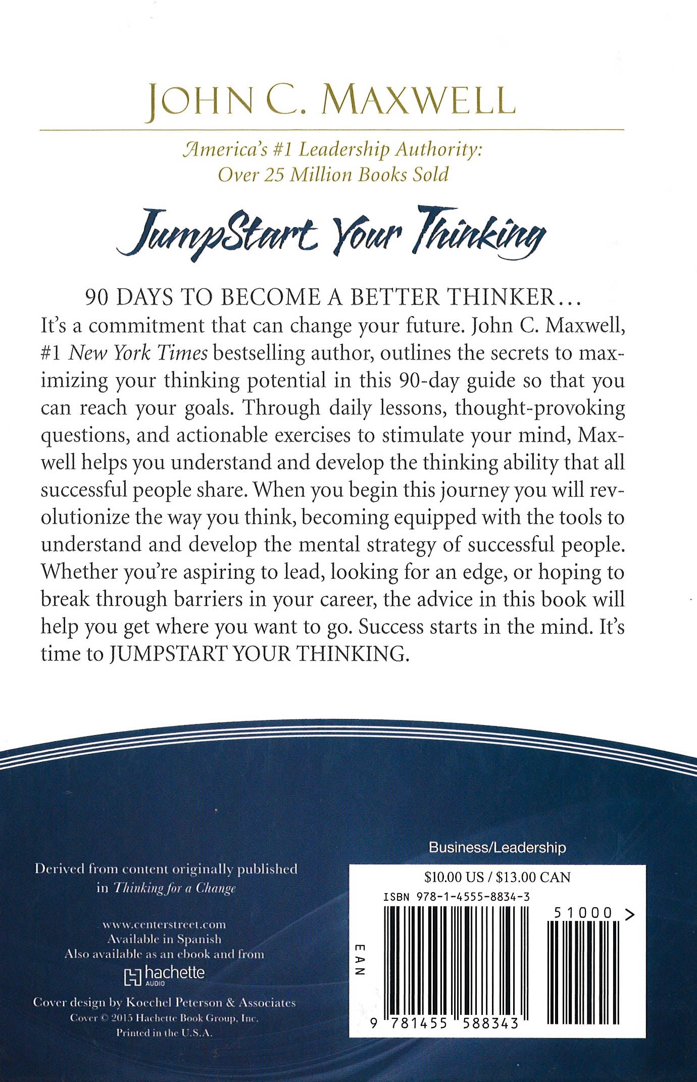 #1 New York Times bestselling author John C. Maxwell shares the secrets to success in this 90-day guide, based on his book Thinking For a Change. Maxwell provides the wisdom and inspiration you need to become a better thinker and achieve your dreams by mastering the eleven types of successful thinking, including: Big-Picture Thinking--seeing the world beyond your own needs and how that leads to great ideas; Focused Thinking--removing mental clutter and distractions to realise your full potential; Creative Thinking--thinking in unique ways and making breakthroughs; Shared Thinking--working with others to compound results; and Reflective Thinking--looking at the past to gain a better understanding of the future. Filled with inspiring quotes, engaging lessons, and stimulating questions, over the course of three short months you'll make daily strides toward more effective thinking while tracking your progress in this portable volume.
