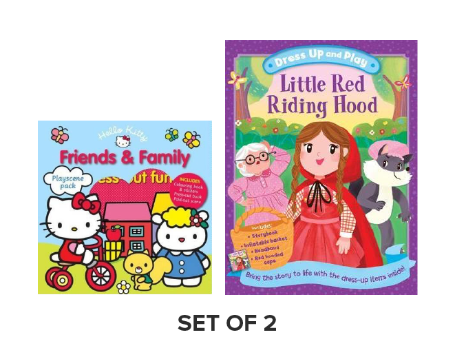 Which sounds more fun: dressing up and playing the part of Little Red Riding Hood, or enjoying colouring and sticker play time with Hello Kitty, her friends, and family? With this bundle, your child won’t have to choose and can enjoy the best of both worlds.