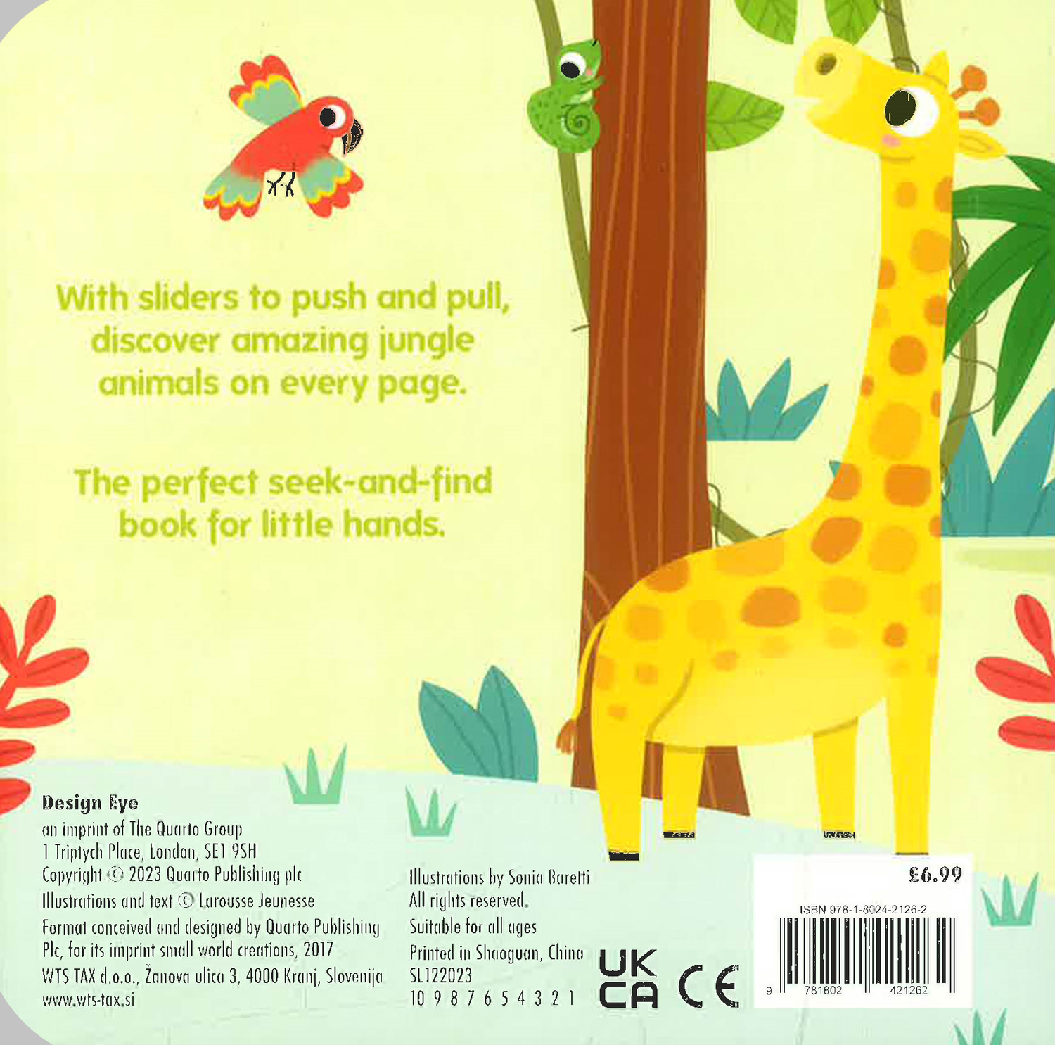 With sliders to push and pull, discover jungle animals on every page. The perfect seek-and-find book for little hands..