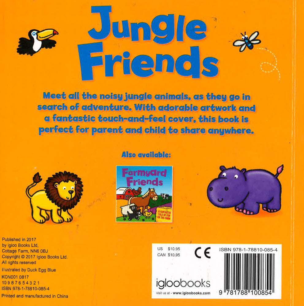 Meet all the noisy jungle animals, as they go in search adventure. With adorable artwork and a fantastic touch-and-feel cover, this book is perfect for parent and child to share anywhere.