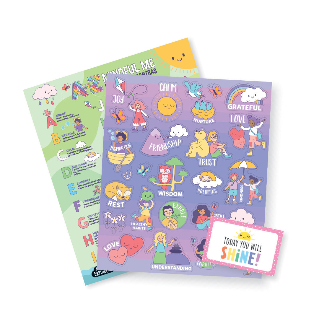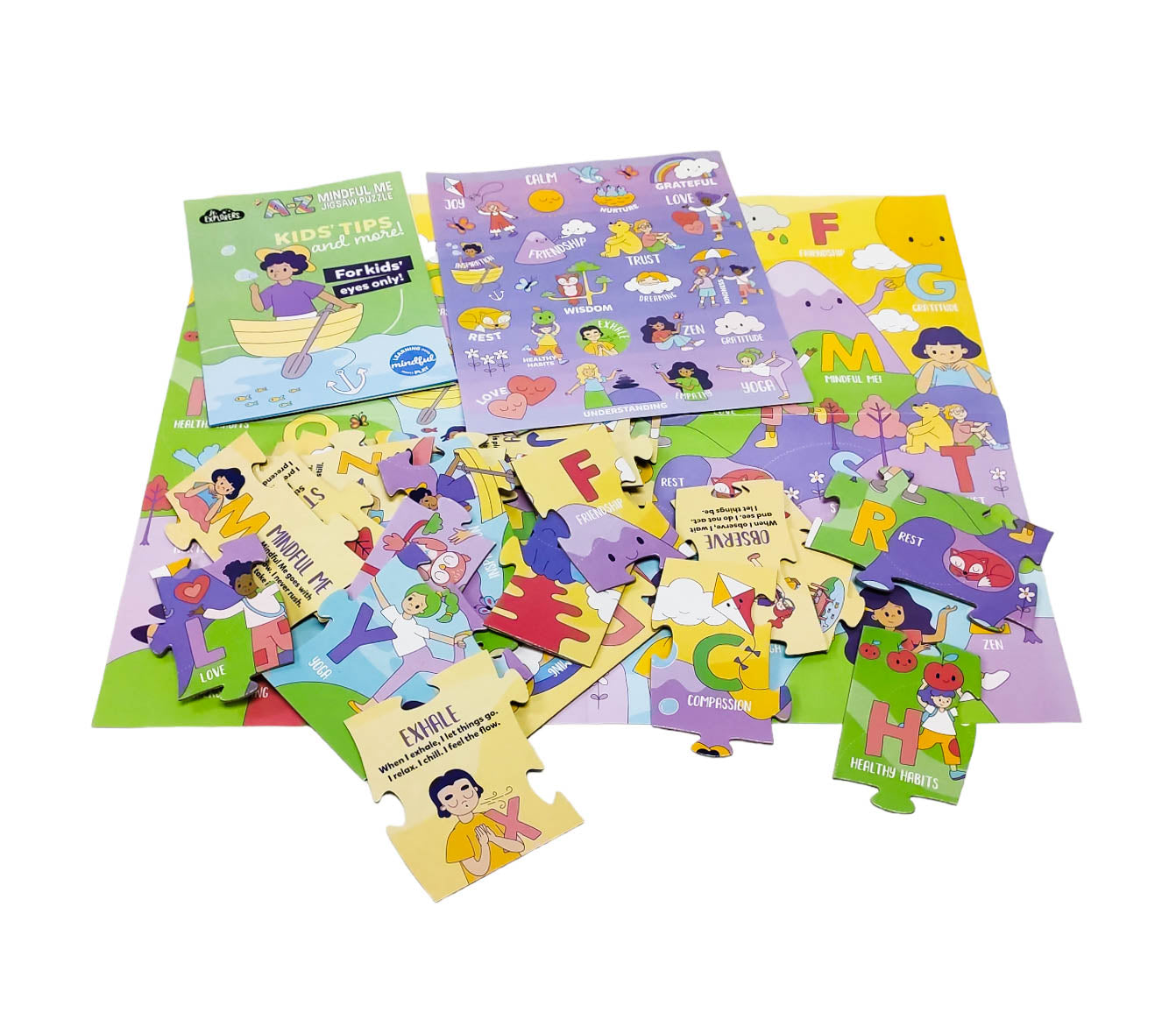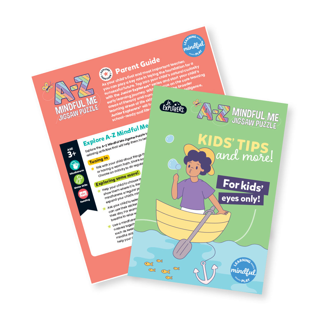 Build alphabet knowledge and help your Explorer find their quiet place with this 26-piece jigsaw puzzle. Flip the puzzle pieces to discover mindful mantras and use the stickers to help set a mindful focus for the day.