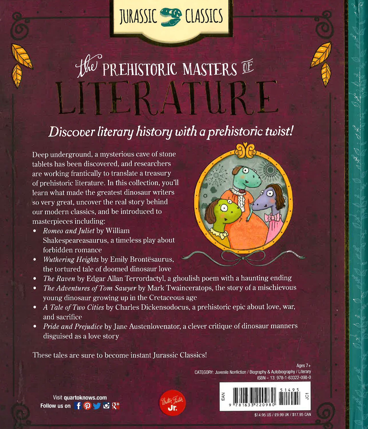 Discover literary history with a prehistoric twist! The dinos of Jurassic Classics: The Prehistoric Masters of Literature show off Shakespeare, Mark Twin, Jane Austin and more!