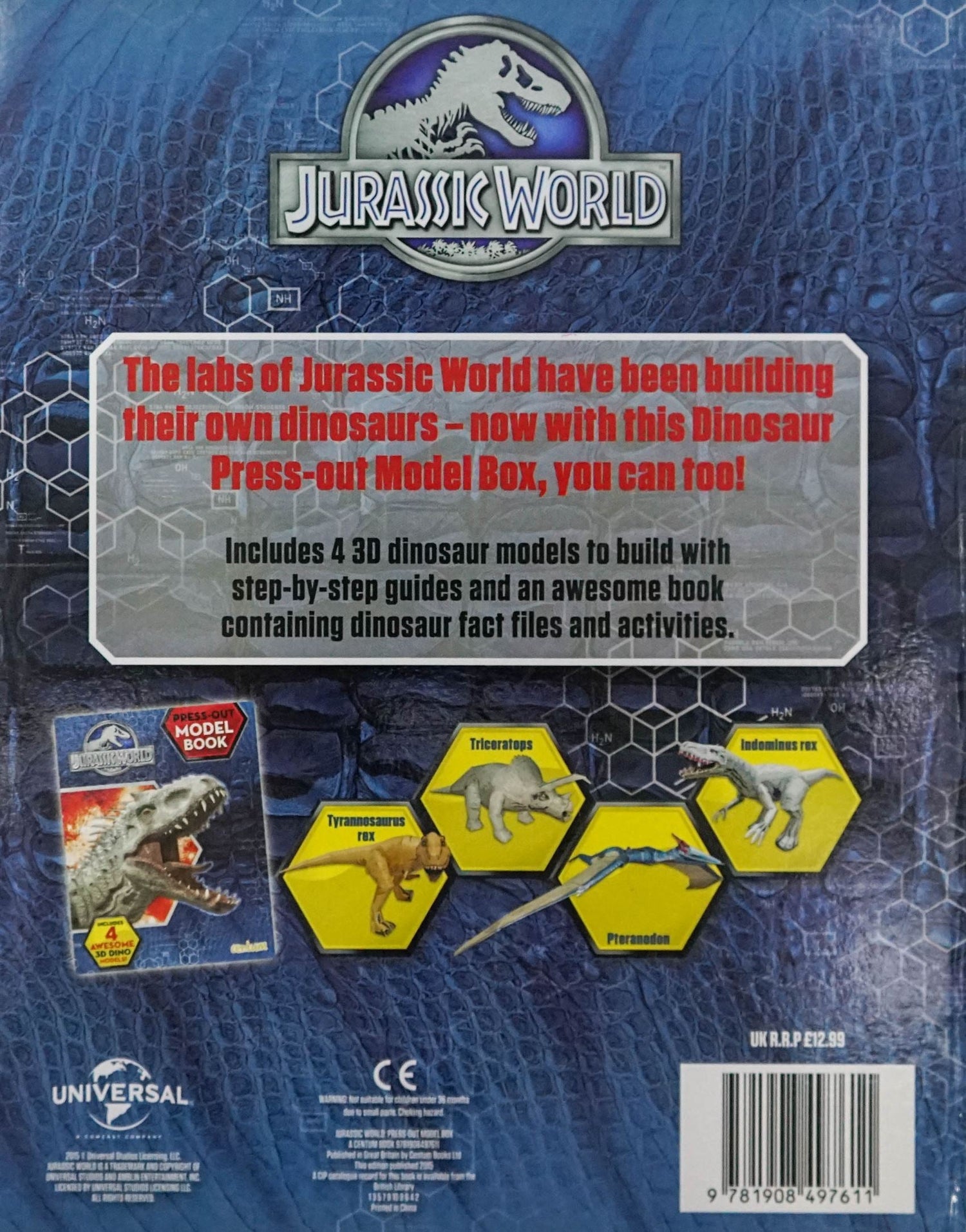 The labs of Jurassic World have been building their own dinosaurs. Includes 4 3D dinosaur models to build with step by step guides and awesome book containing dinosaur fact files and activities.